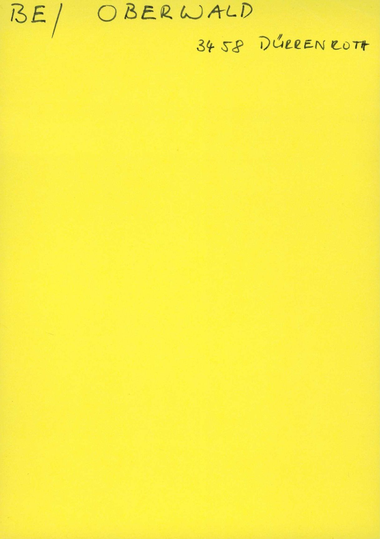 Auf der Vorderseite befindet sich folgende Notiz: BE/ OBERWALD 3458 DÜRRENROTH