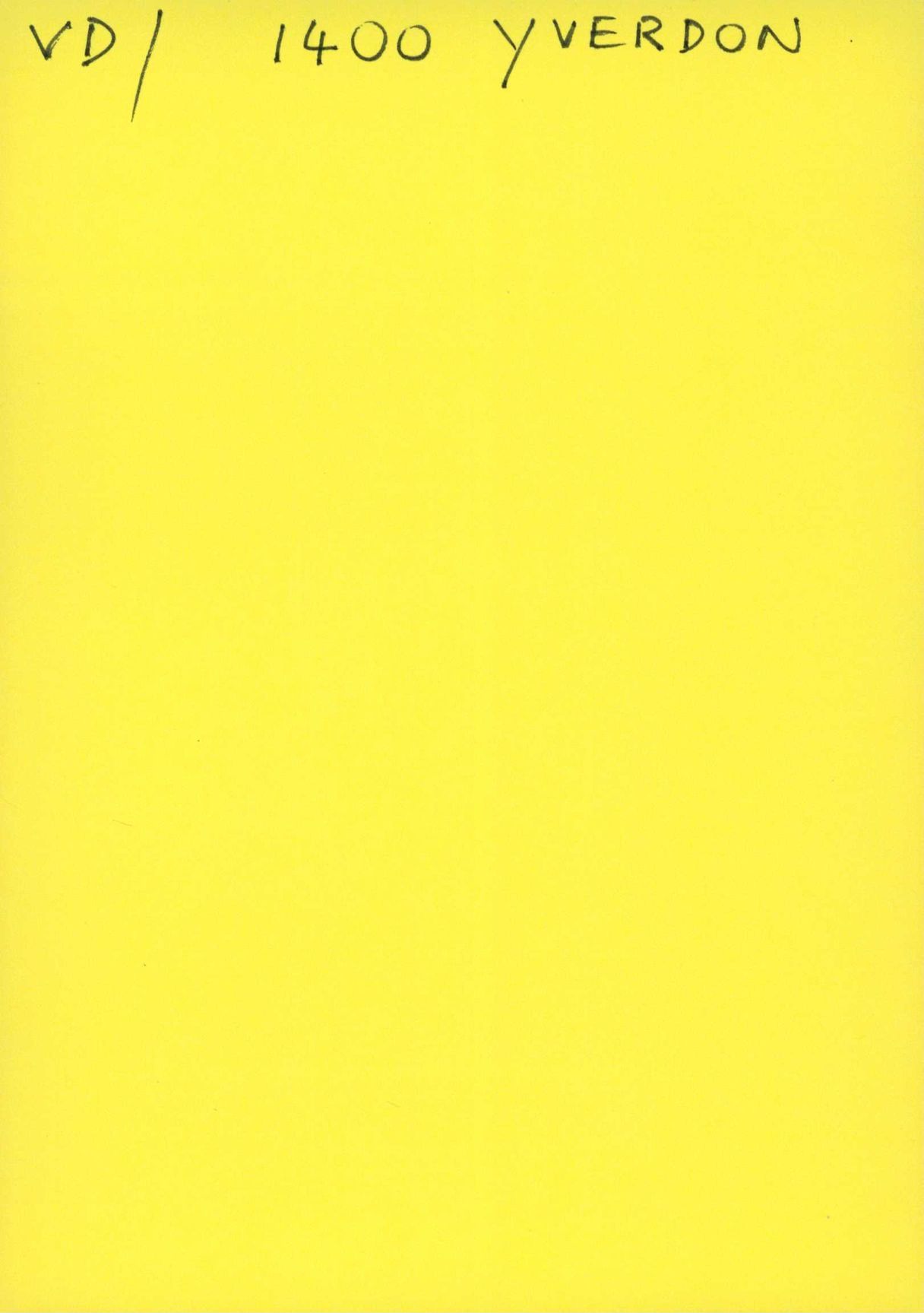 Auf der Vorderseite befindet sich folgende Notiz: VD/ 1400 YVERDON