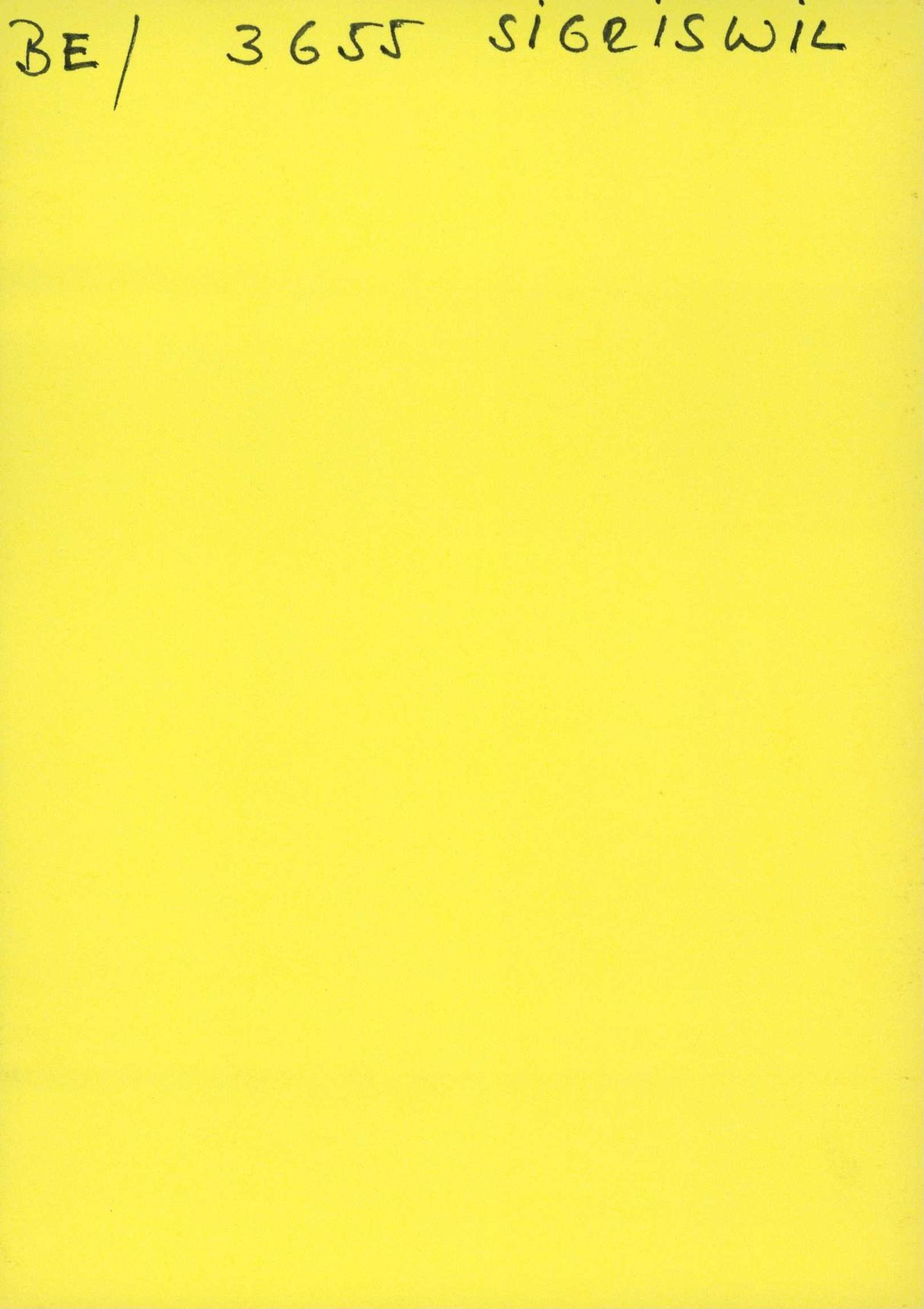 Auf der Vorderseite befindet sich folgende Notiz: BE/ 3655 SIGRISWIL