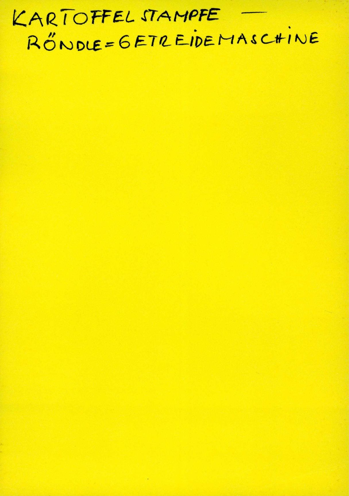 Auf der Vorderseite befindet sich folgende Notiz: KARTOFFELSTAMPFE - RÖNDLE = GETREIDEMASCHINE