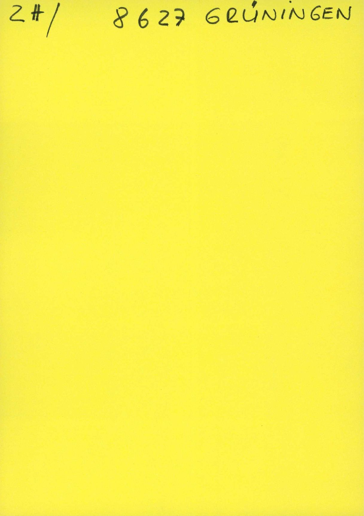 Auf der Vorderseite befindet sich folgende Notiz: ZH/ 8627 GRÜNINGEN