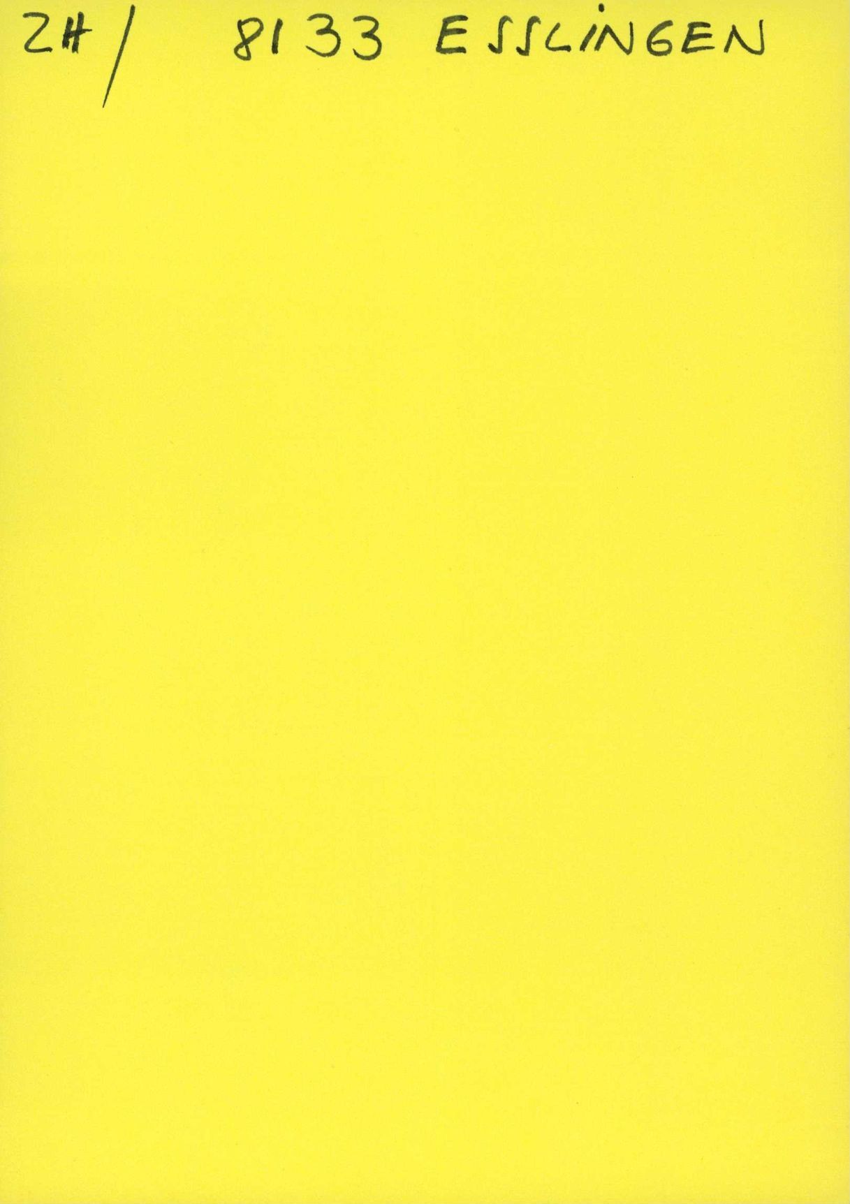 Auf der Vorderseite befindet sich folgende Notiz: ZH/ 8133 ESSLLINGEN