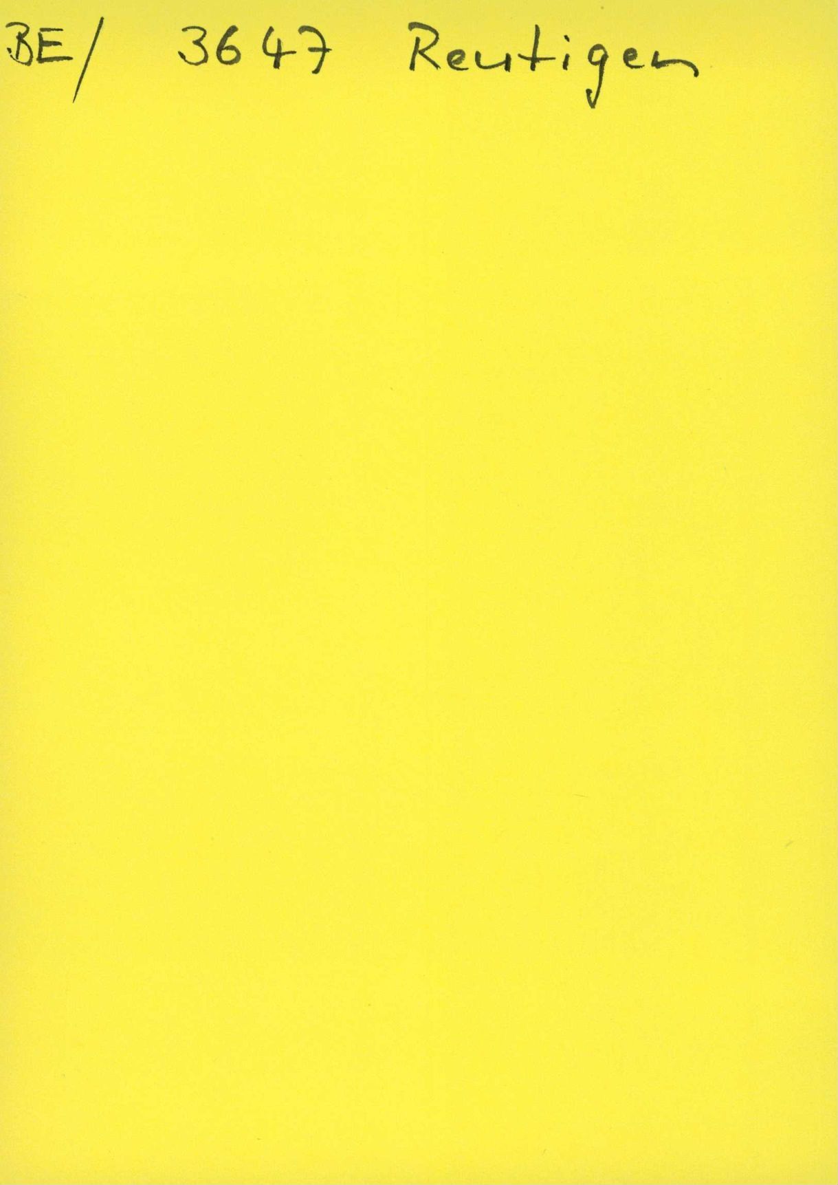Auf der Vorderseite befindet sich folgende Notiz: BE/ 3647 Reutigen
