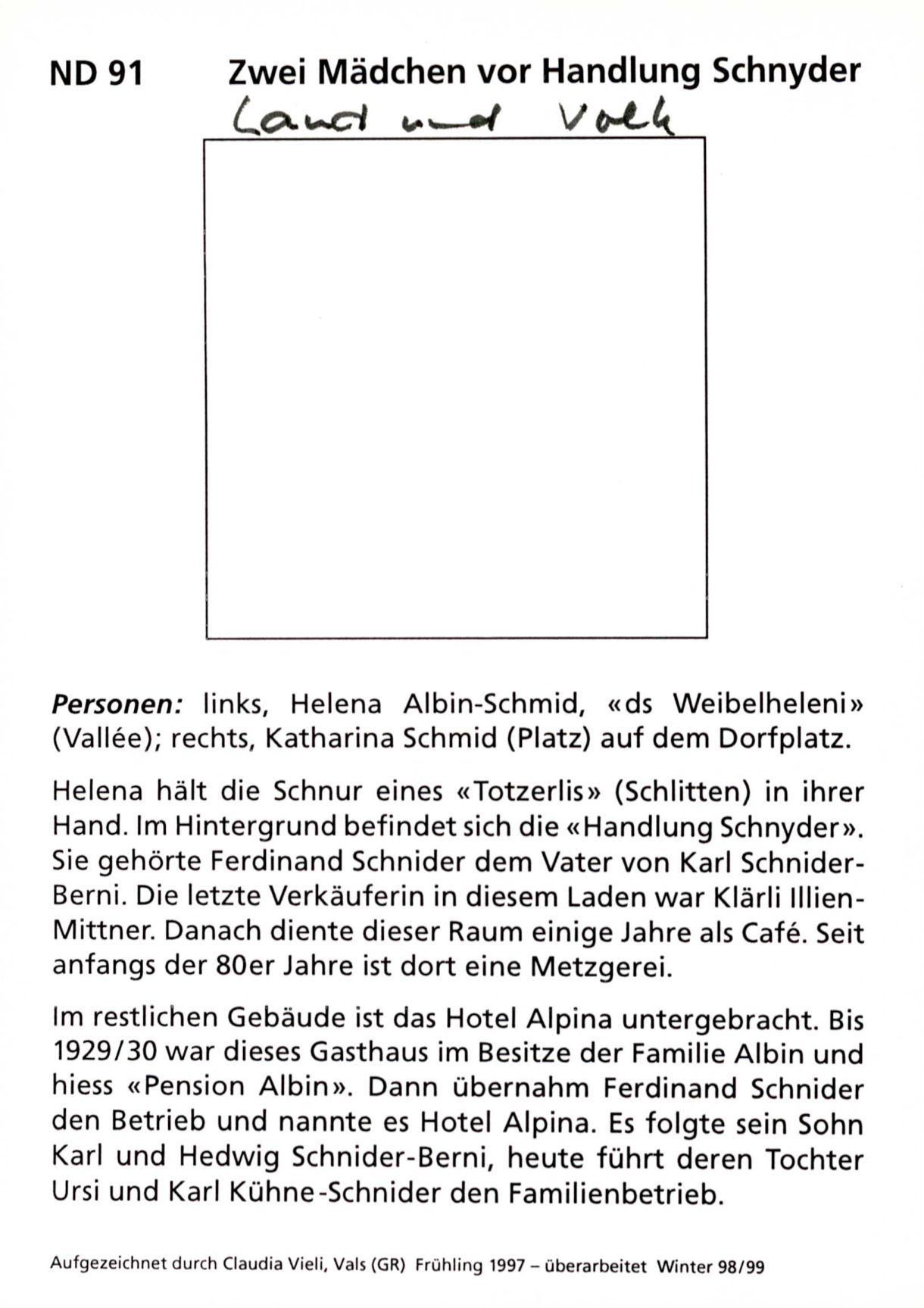 [Karteikarte Zwei Mädchen vor Handlung Schnyder]