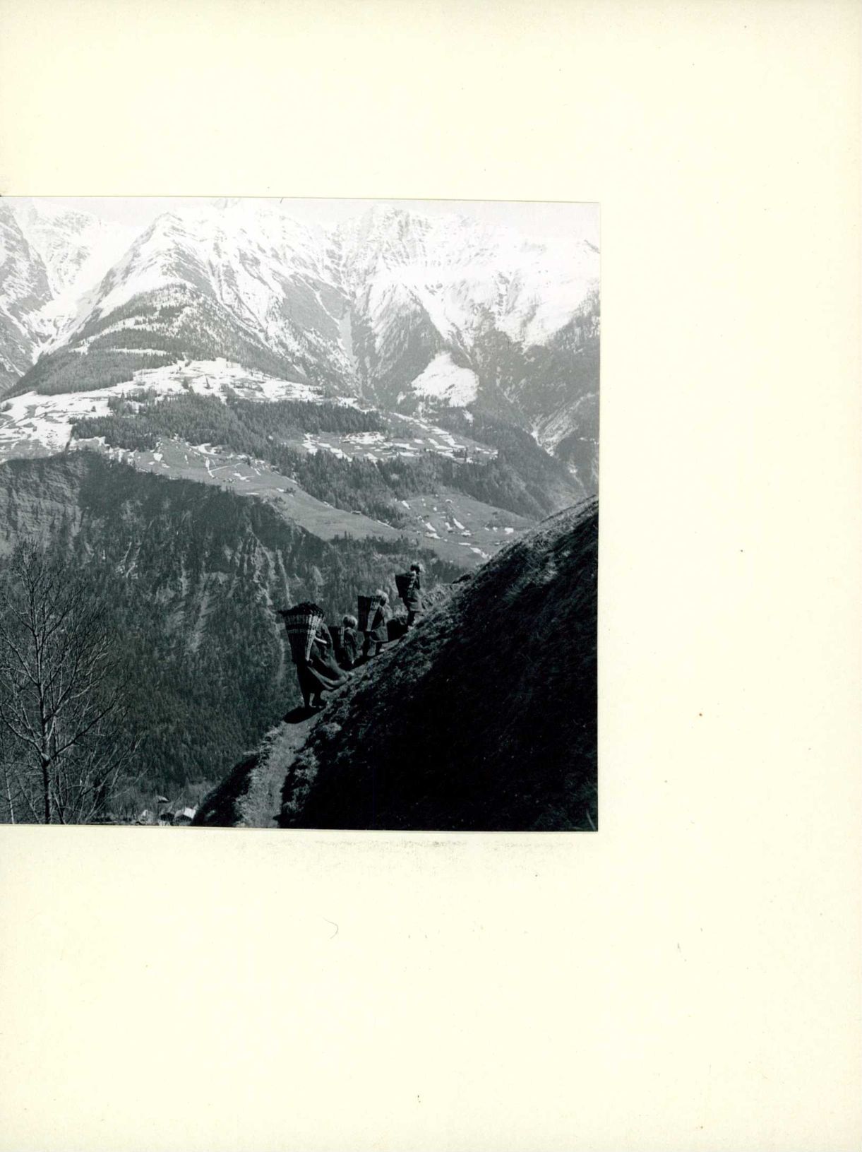 Auf der Rückseite befindet sich folgende Notiz: Arbei, Bauer Mist-tragen Ried-Mörel Goms Wallis 3986