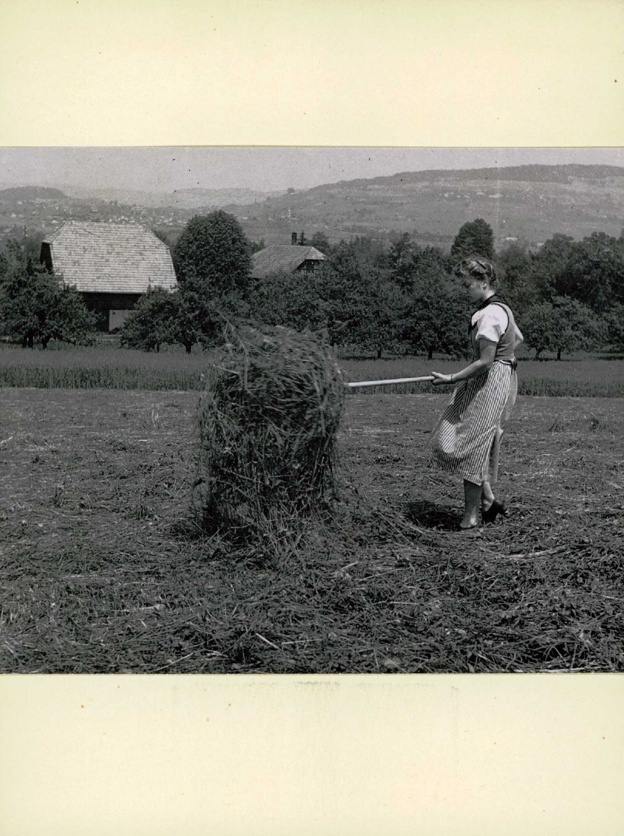 [Frau beim Heuen im Landdienst]