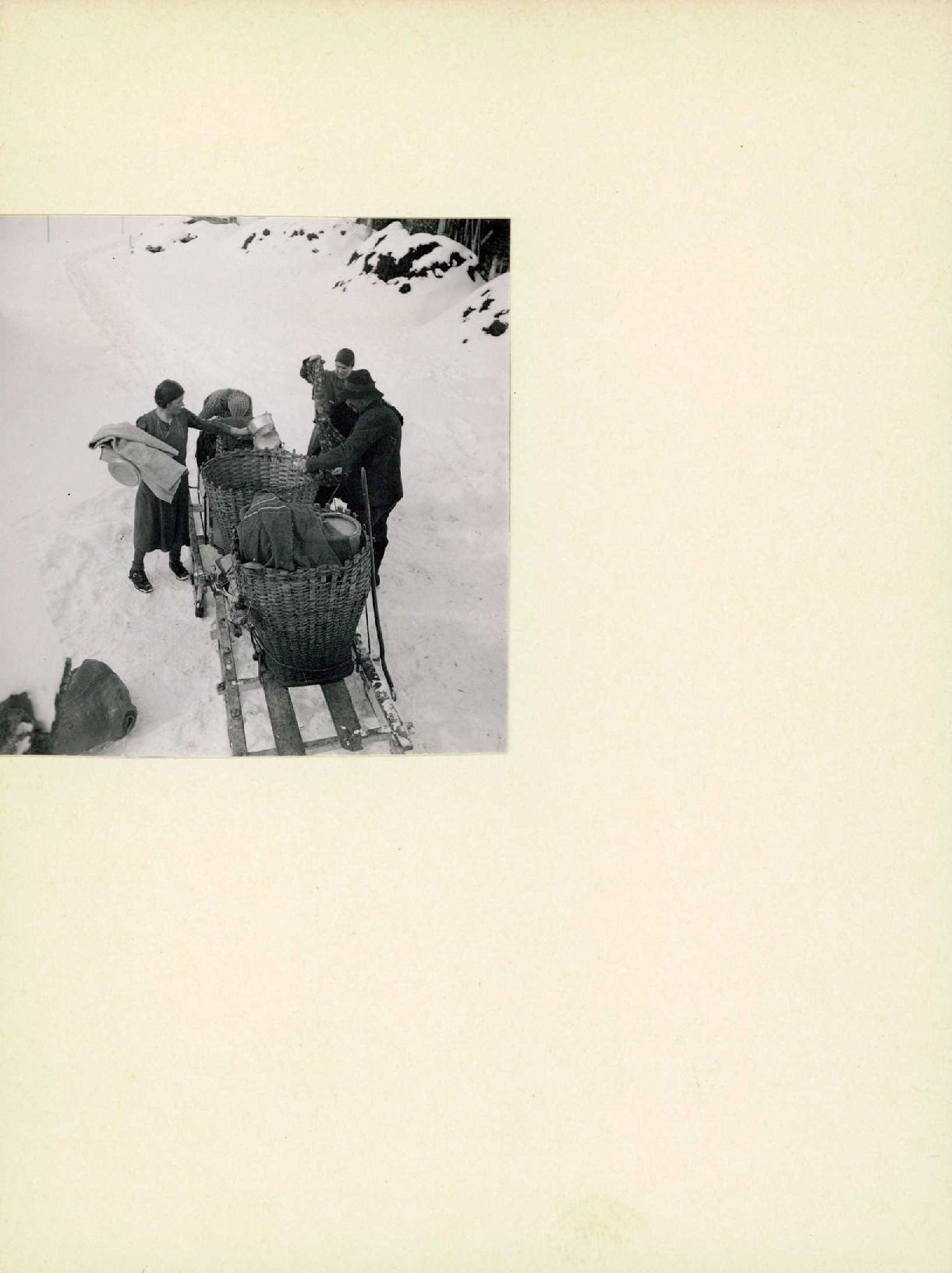 [Beladen von Schlitten mit Haushaltsgegenständen]