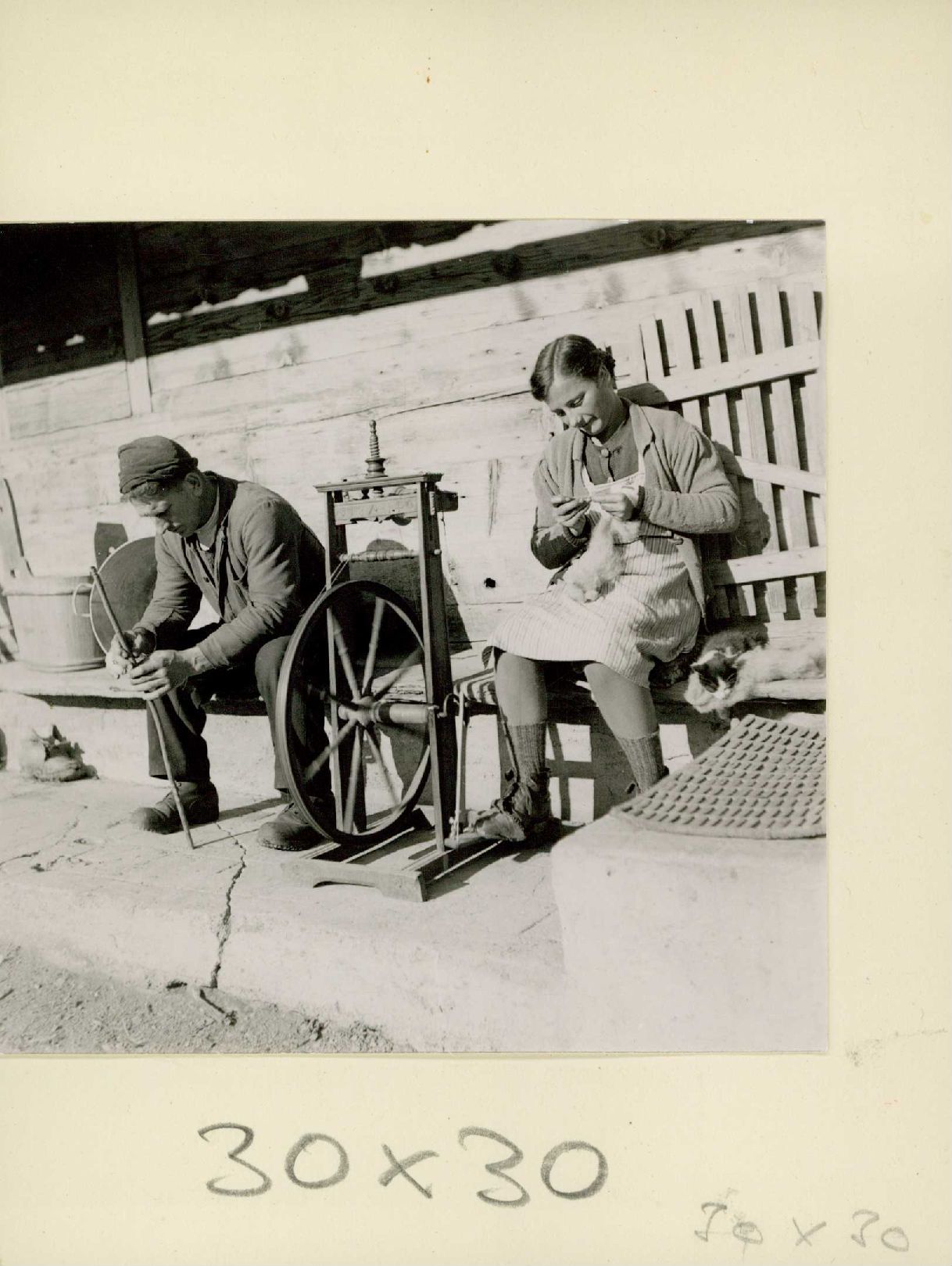 Auf der Rückseite befindet sich folgende Notiz: Arbeit Bauer Garn Wolle spinnen (Reinisch) Frutigen Bern 3714 -