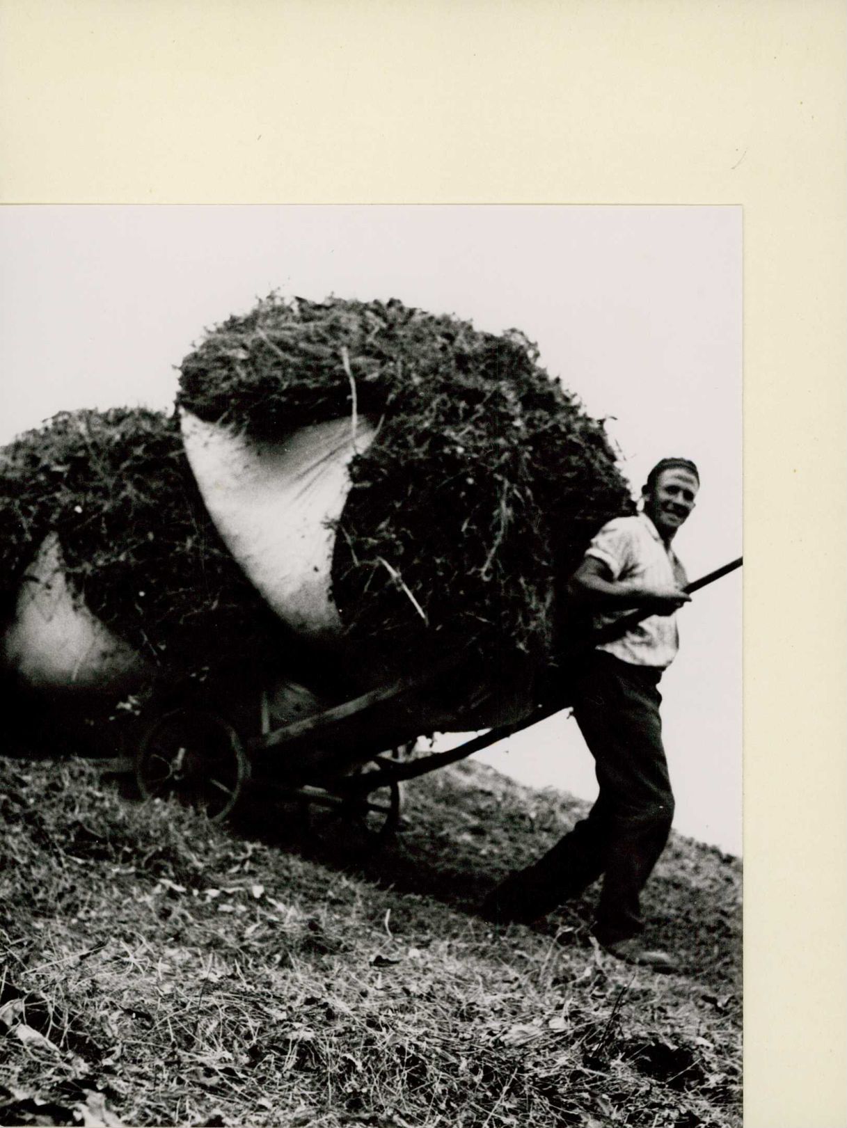 [Heutransport mit Tüchern und Handkarren]