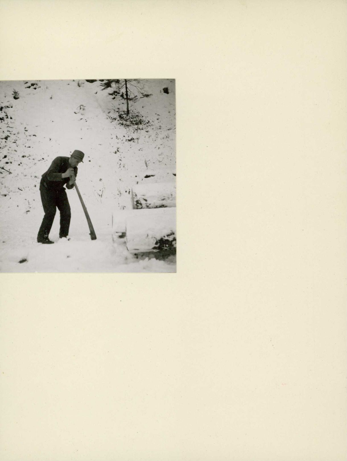[David Regez beim Umlagern von Baumstämmen]