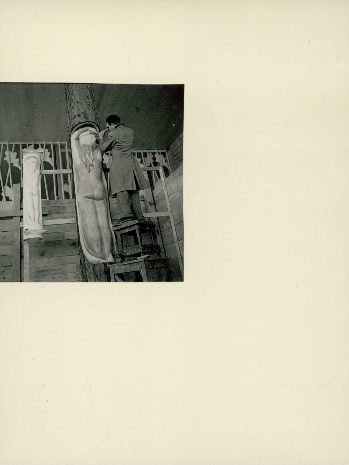 Auf der Rückseite befindet sich folgende Notiz: Arbeit Gewerbe Holzschnitzer Landi 1939 Bildhauer C. Fischer Zürich