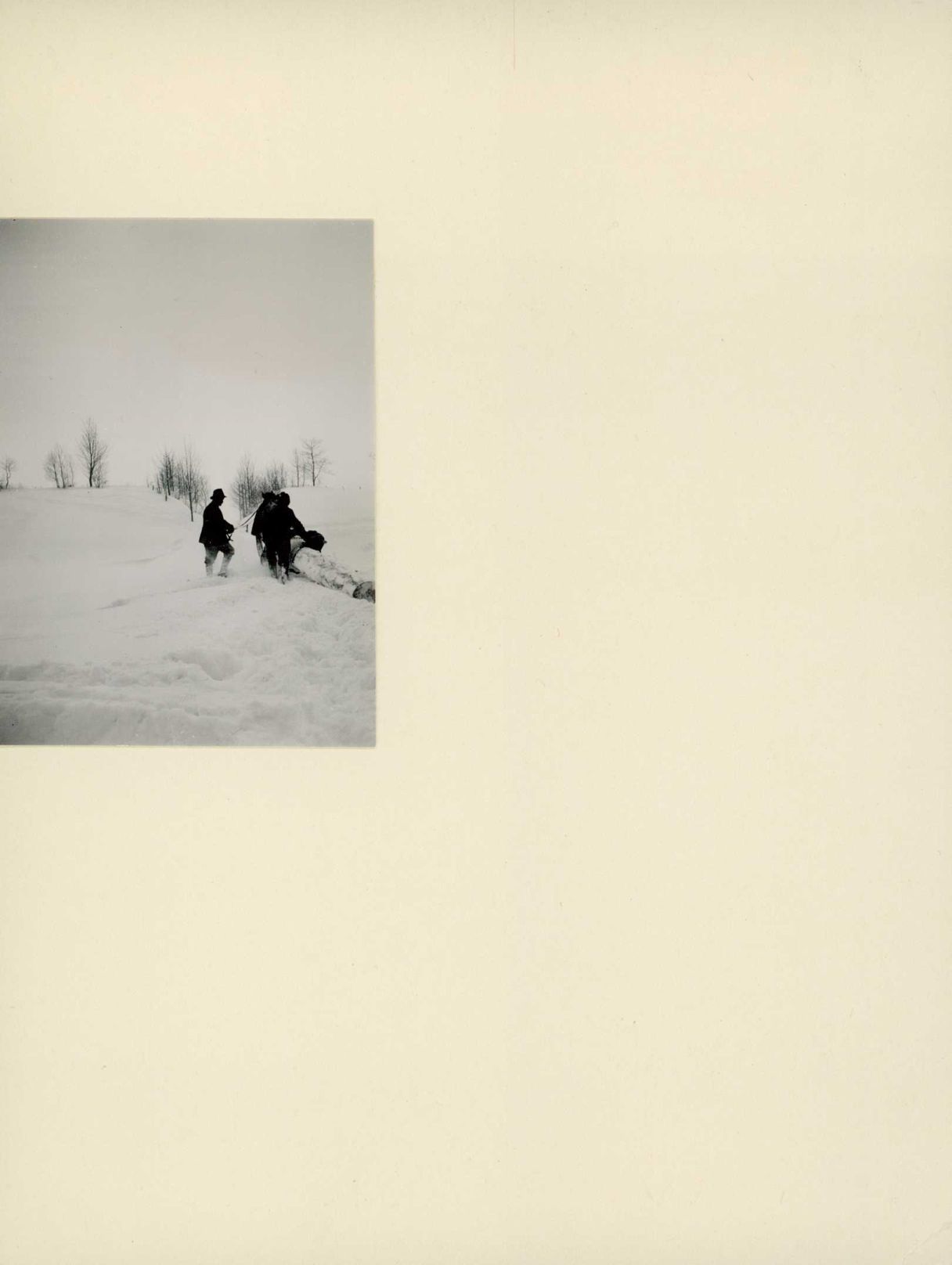 [Transport von einem Baumstamm im Schnee]