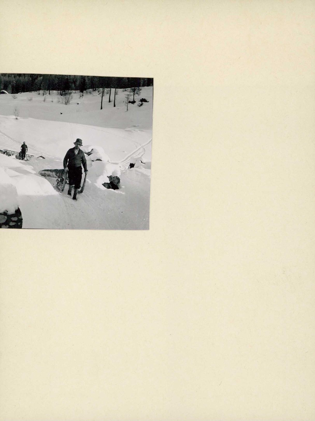 [Transport von Baumstämmen mit Schlitten]