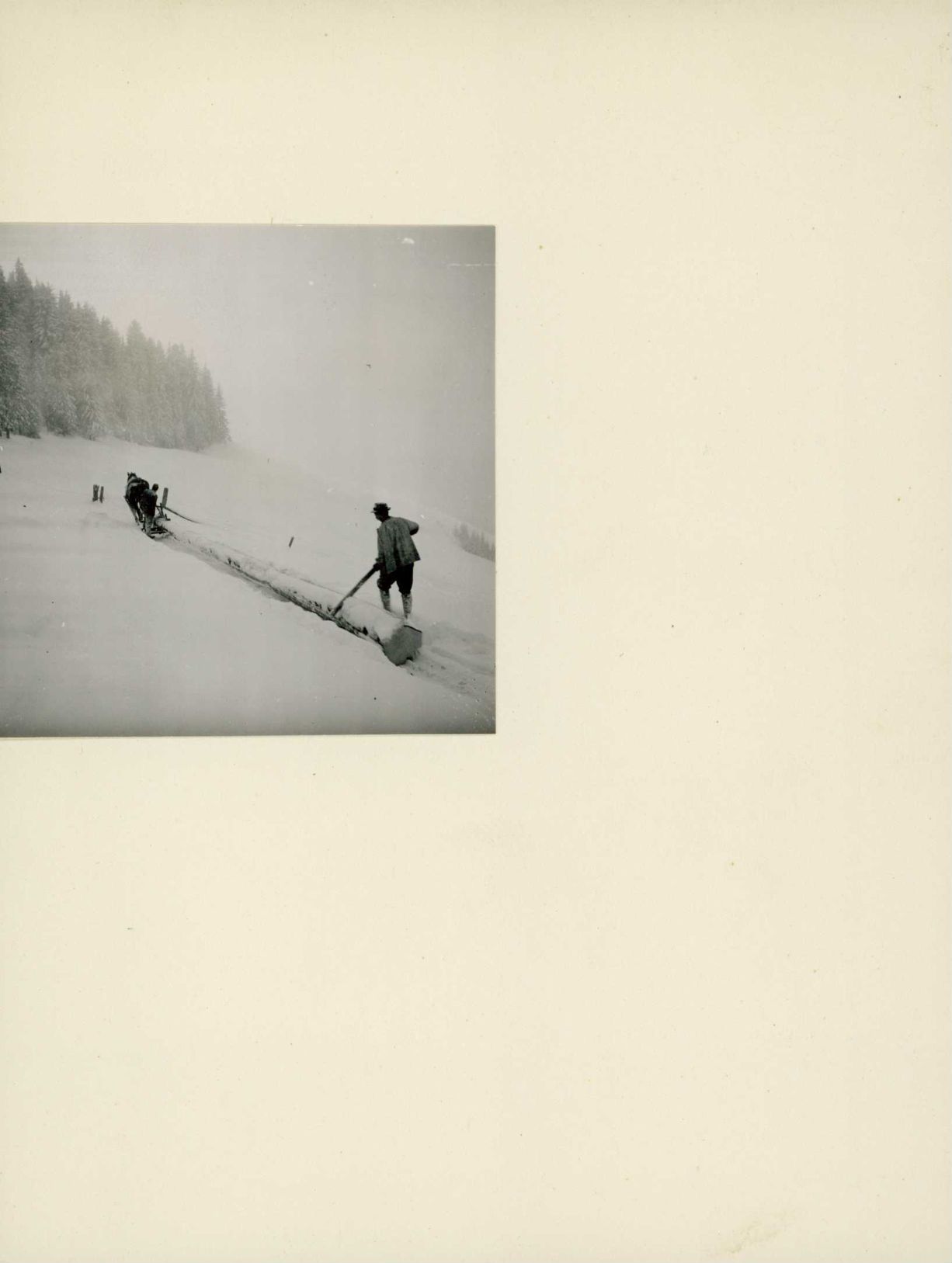 [Transport von Baumstämmen mit Pferdeschlitten]