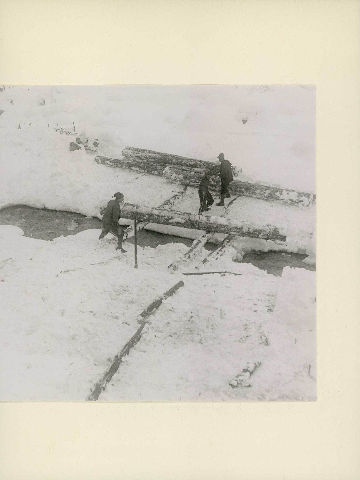 [Baumstämme werden freigelegt und zum Transport vorbereitet]