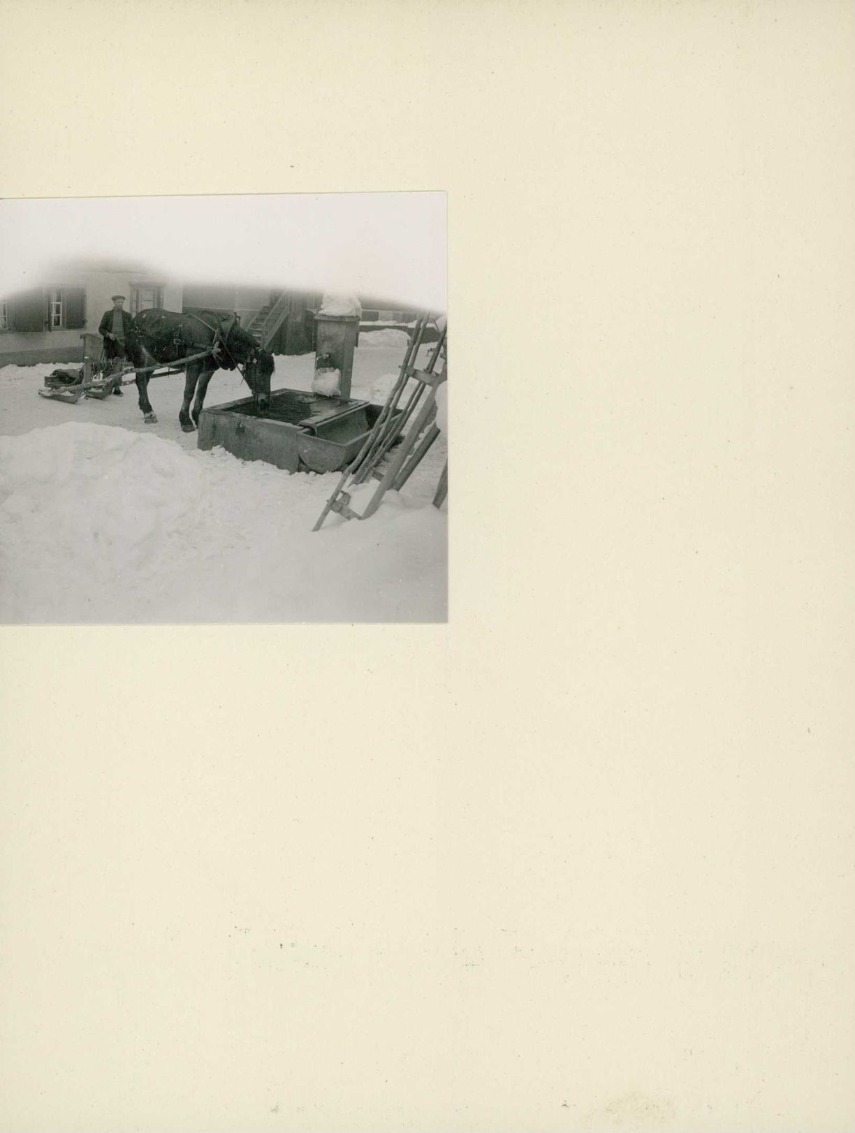 [Pferd trinkt an Brunnen]