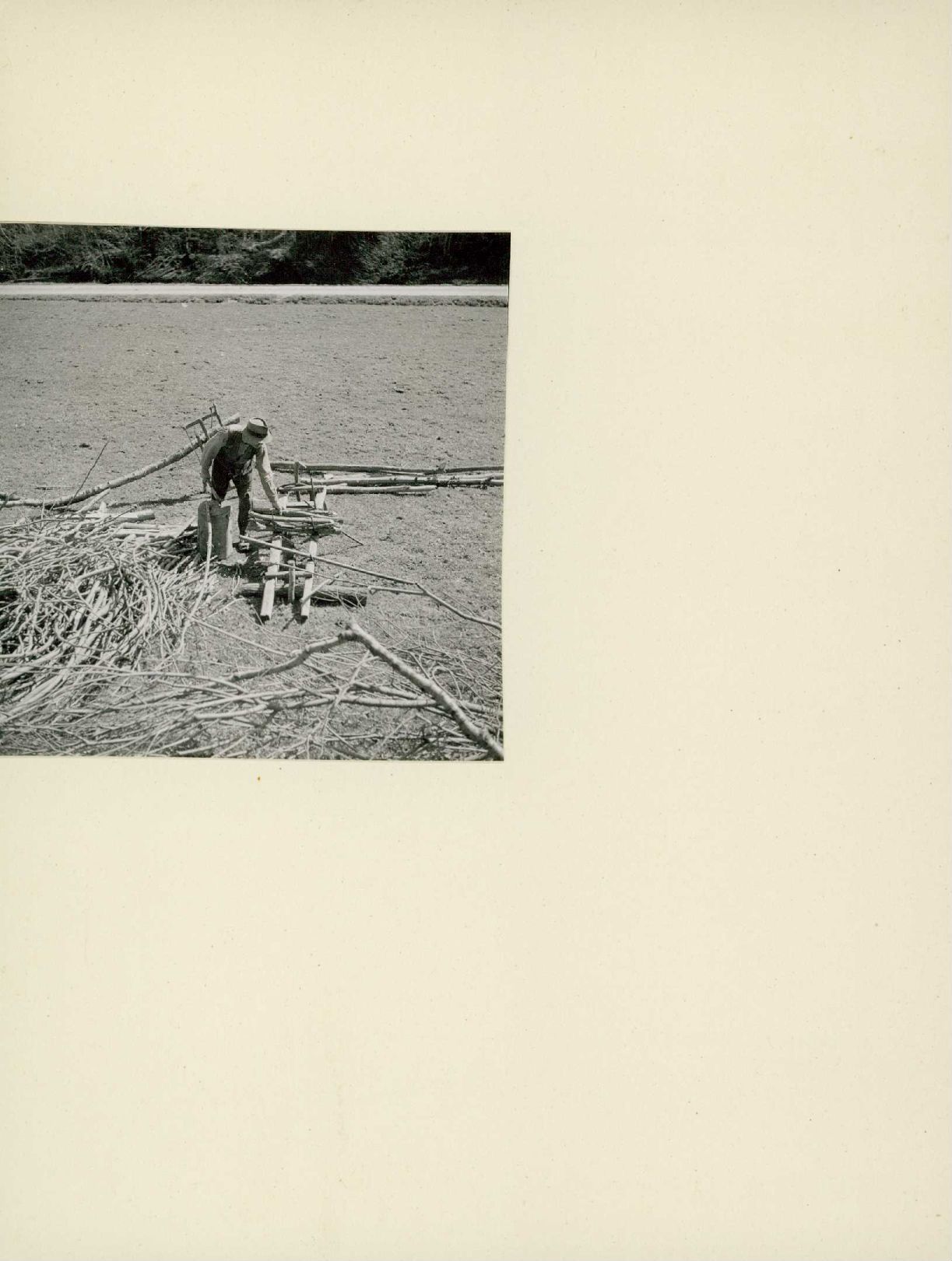 [Mann bündelt Brennholz im Fontannental]
