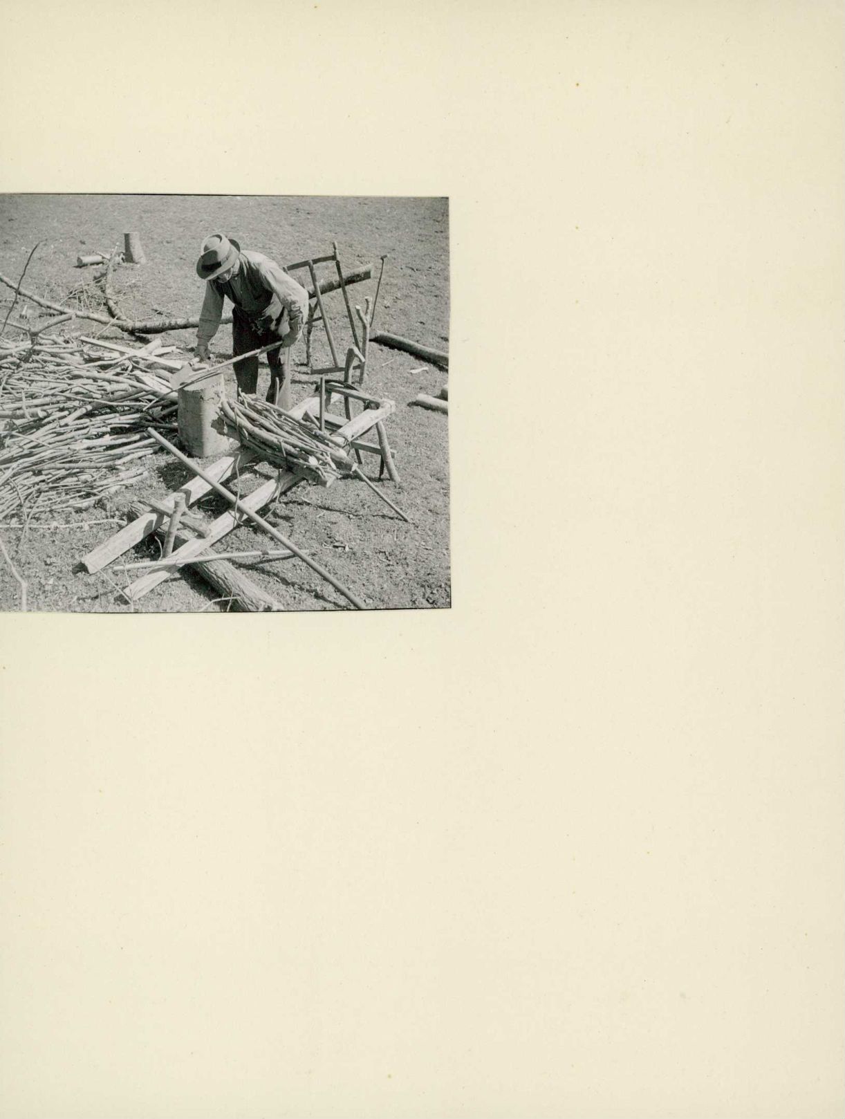 [Mann bündelt Brennholz im Fontannental]