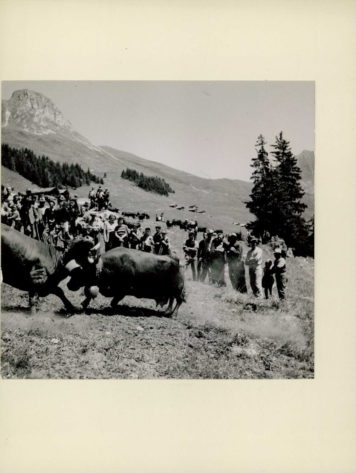 Auf der Rückseite befindet sich folgende Notiz: Brauch Alp Kuhkampf Alp Marlena Les Planards ob Verbier Bagnes Wallis
