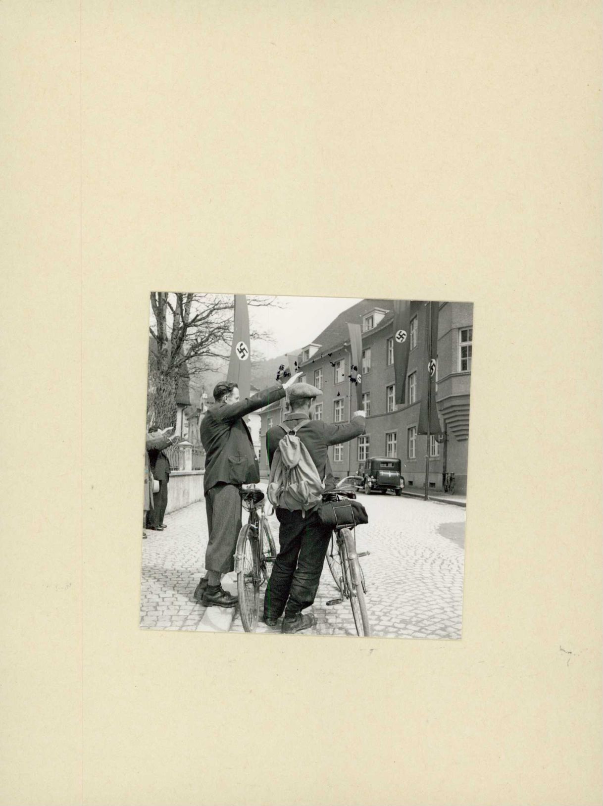 [Passanten zeigen den Hitlergruss in Bludenz nach dem "Anschluss" Österreichs]