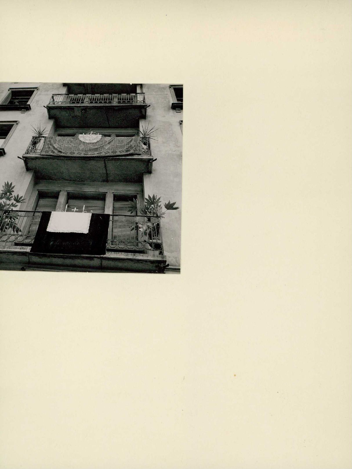 [Geschmückte Balkone an Fronleichnamsprozession]