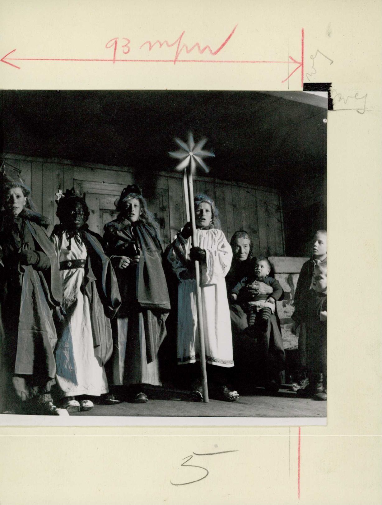 Auf der Rückseite befindet sich folgende Notiz: Brauch Religion Drei Könige Vrin Lugnez Bünden (alles durchgestrichen) [Dreikönigssingen im Lugnez ( Photo E. Brunner, Luzern) RW SH