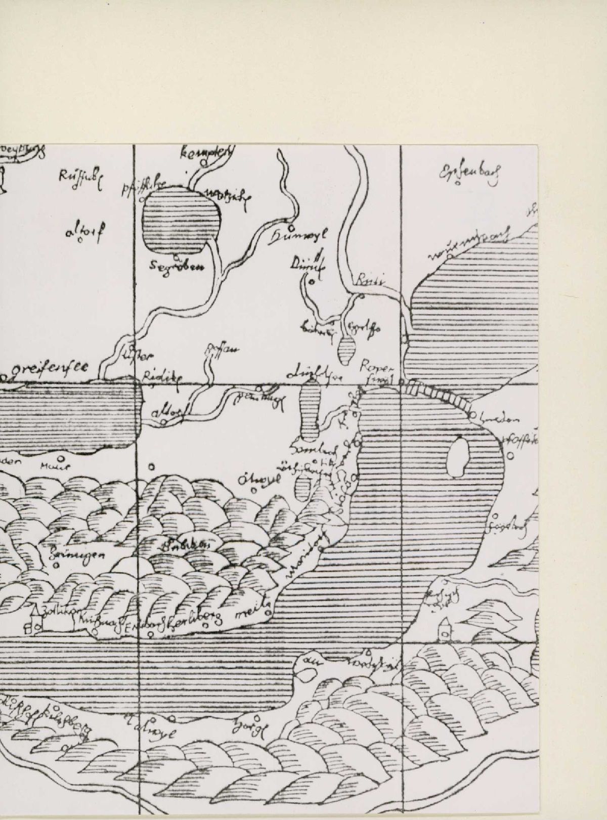 [Reproduktion einer Buchseite mit alter Karte des Zürichsees]
