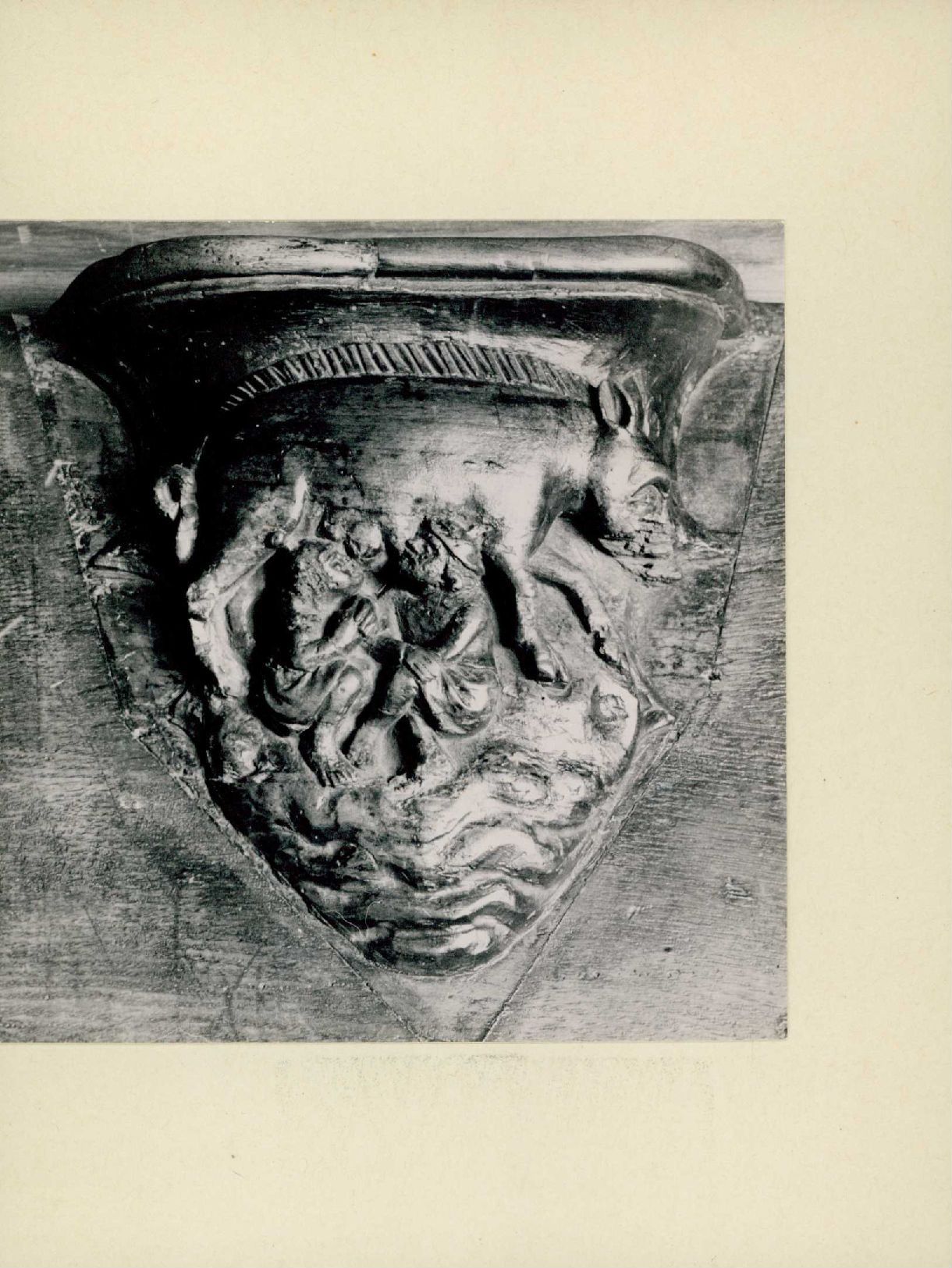 Auf der Rückseite befindet sich folgende Notiz:Ding Gerät Sitz Miserikordien Münstermuseum Basel Basel Basel Münster