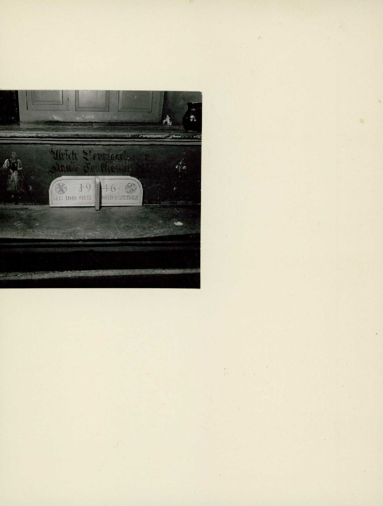Auf der Rückseite befindet sich folgende Notiz:Ding Gerät Bauern lernen schnitzen im *Lehn* Trueb Emmental Bern