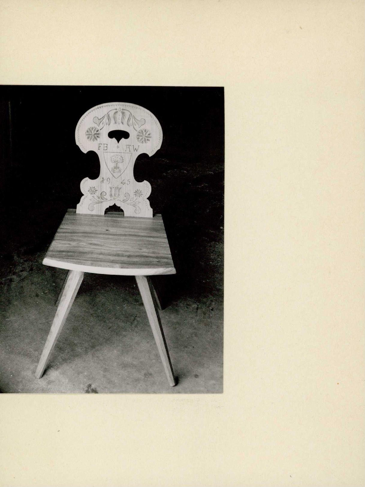 [Holzstuhl mit geschnitzter Lehne]