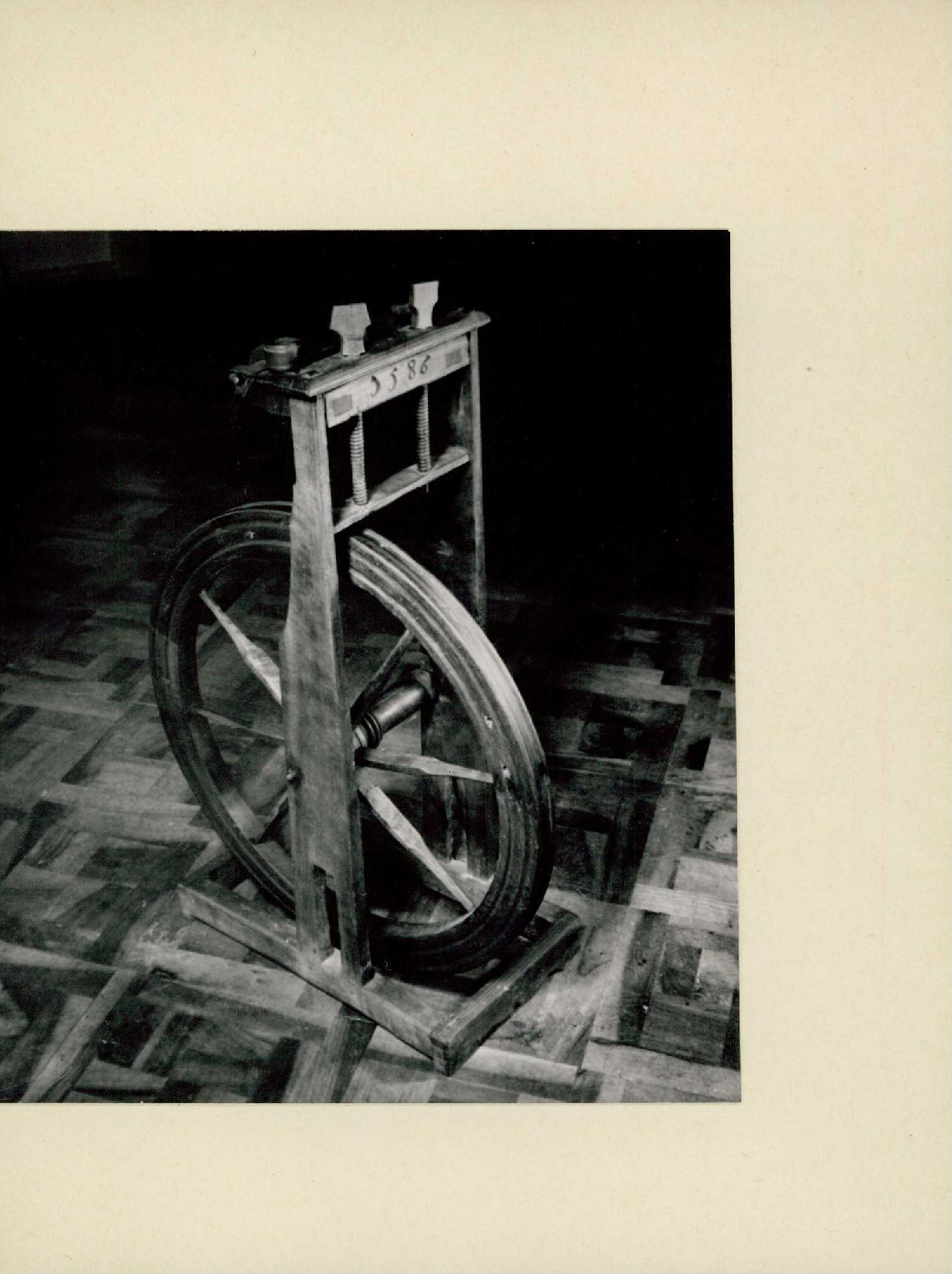 Auf der Rückseite befindet sich folgende Notiz:Ding Gerät Spinnrad Oberland Bern RW
