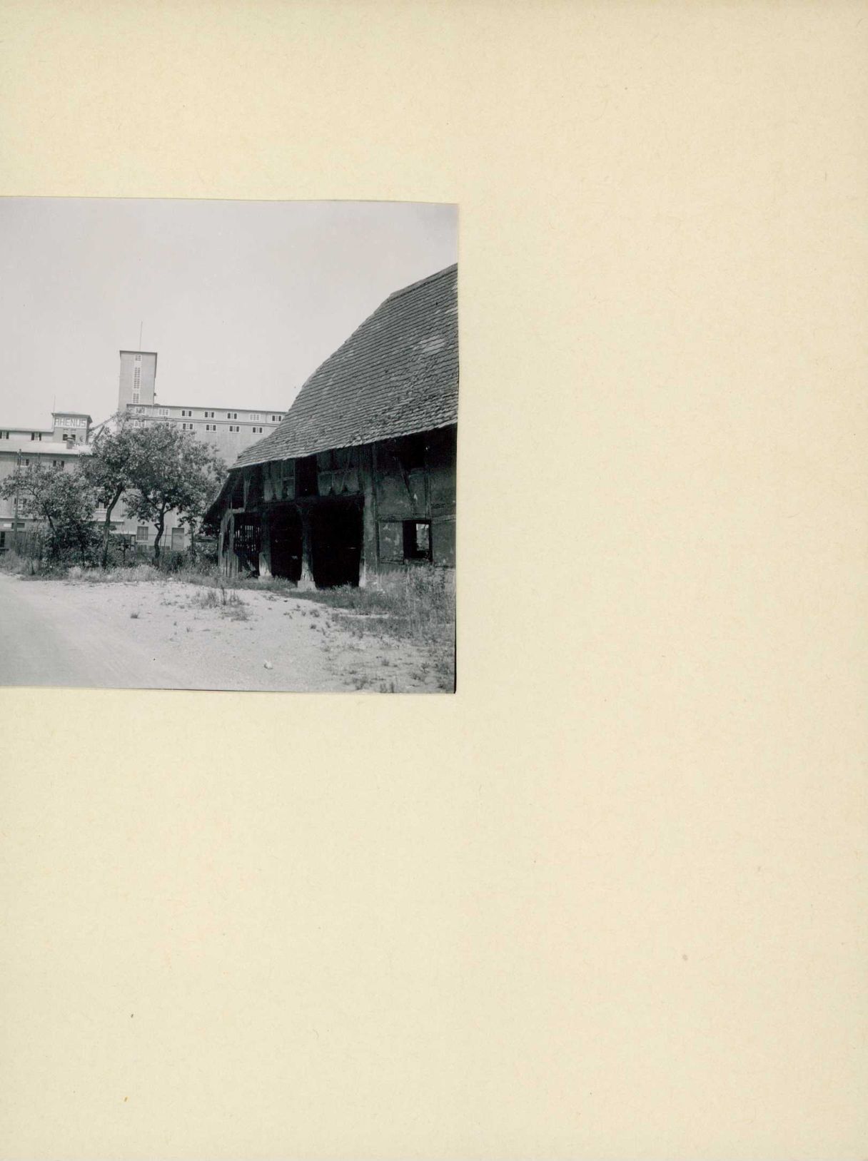 [Bauernhaus neben Industriegebiet]
