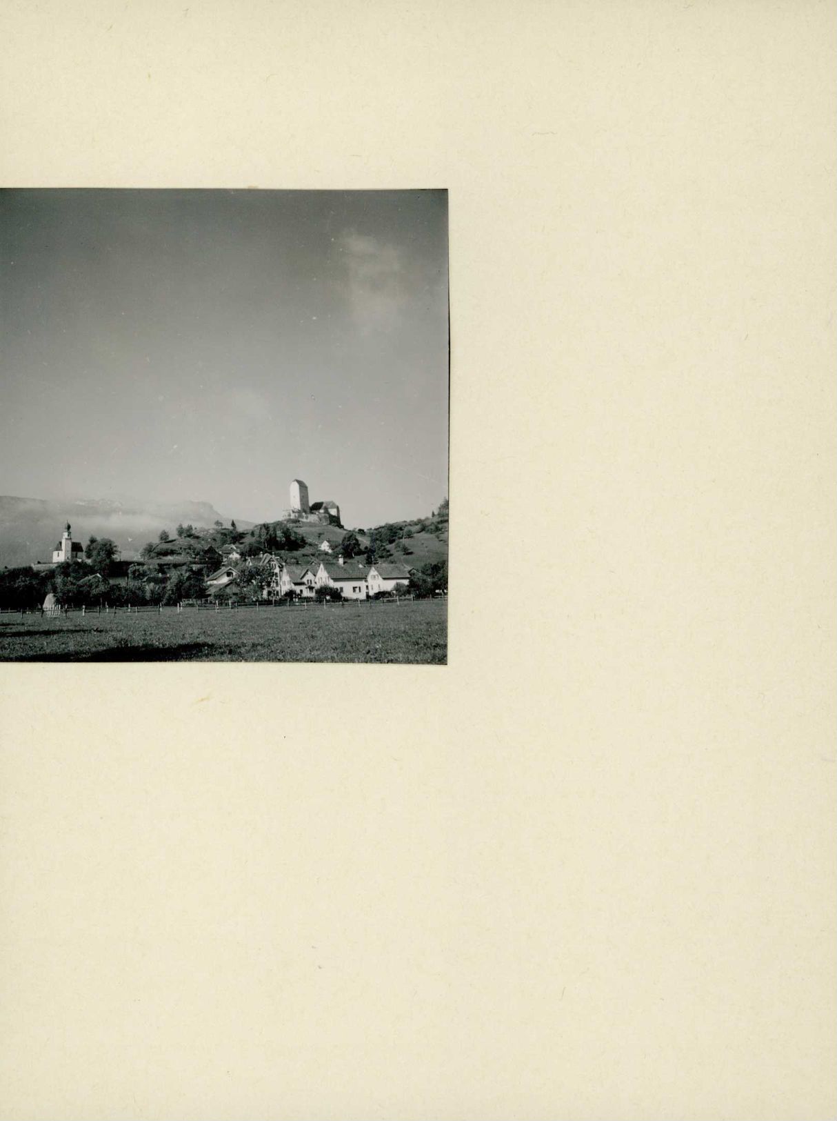 [Blick auf Schloss Sargans und Kapelle St. Sebastian]