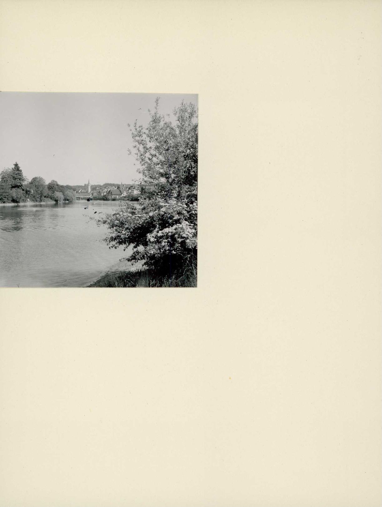 [Gedeckte Brücke und Kirche in Städtchen]