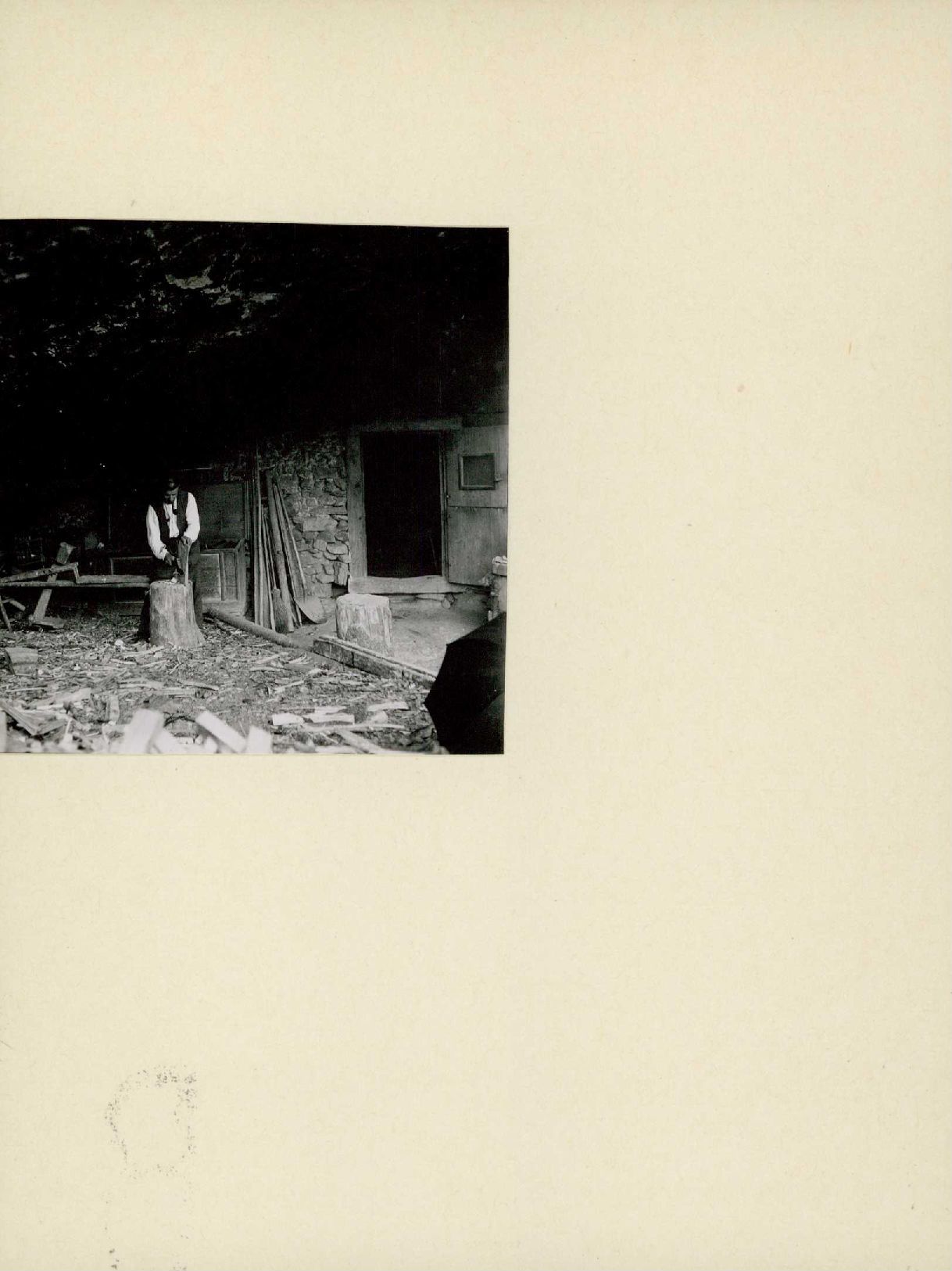 [Mann beim Holzhacken in der Hohlenfluh]
