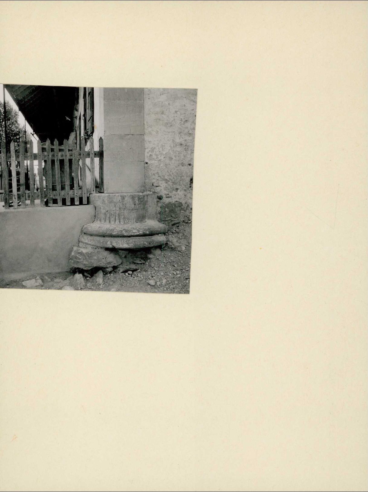 [Römisches Kapitell als Sockel eines Bauernhauses]
