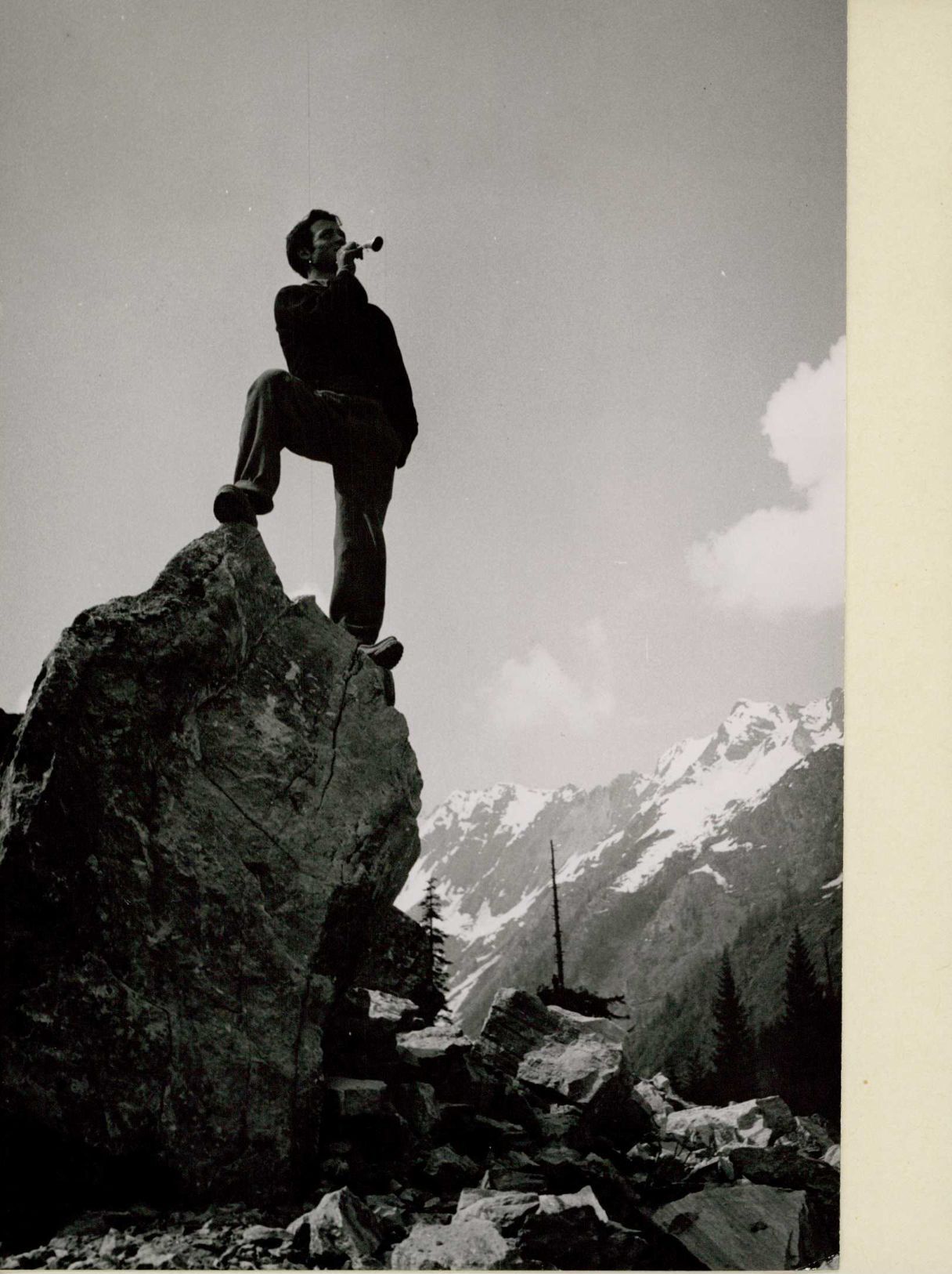 [Arbeiter mit "Hörnli": Sprengwarnung]
