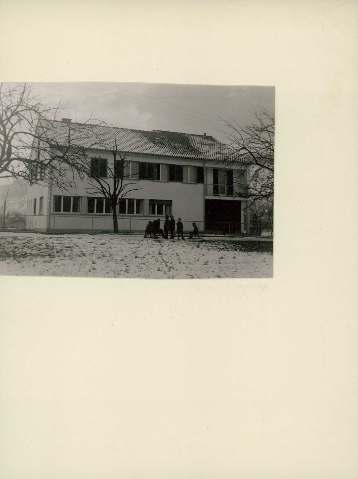 [Kinder vor Haus im Winter]
