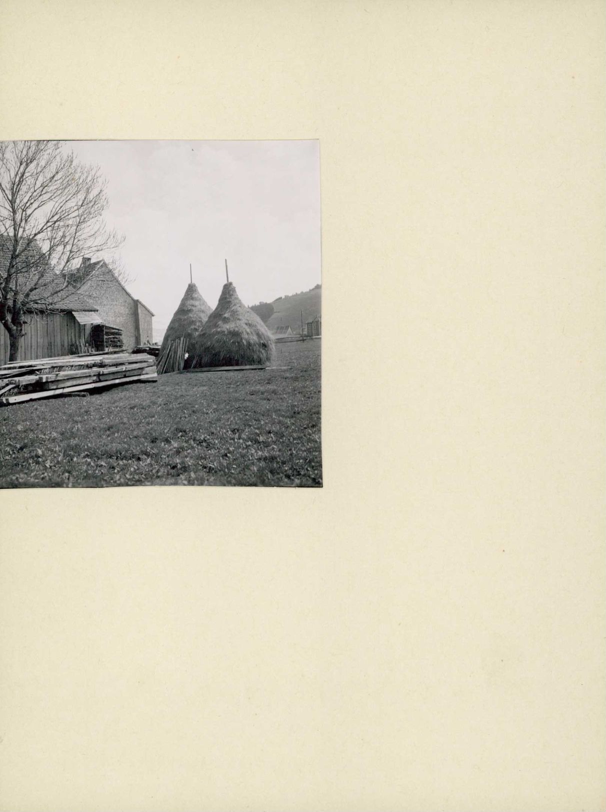 [Heuhaufen vor Bauernhaus]