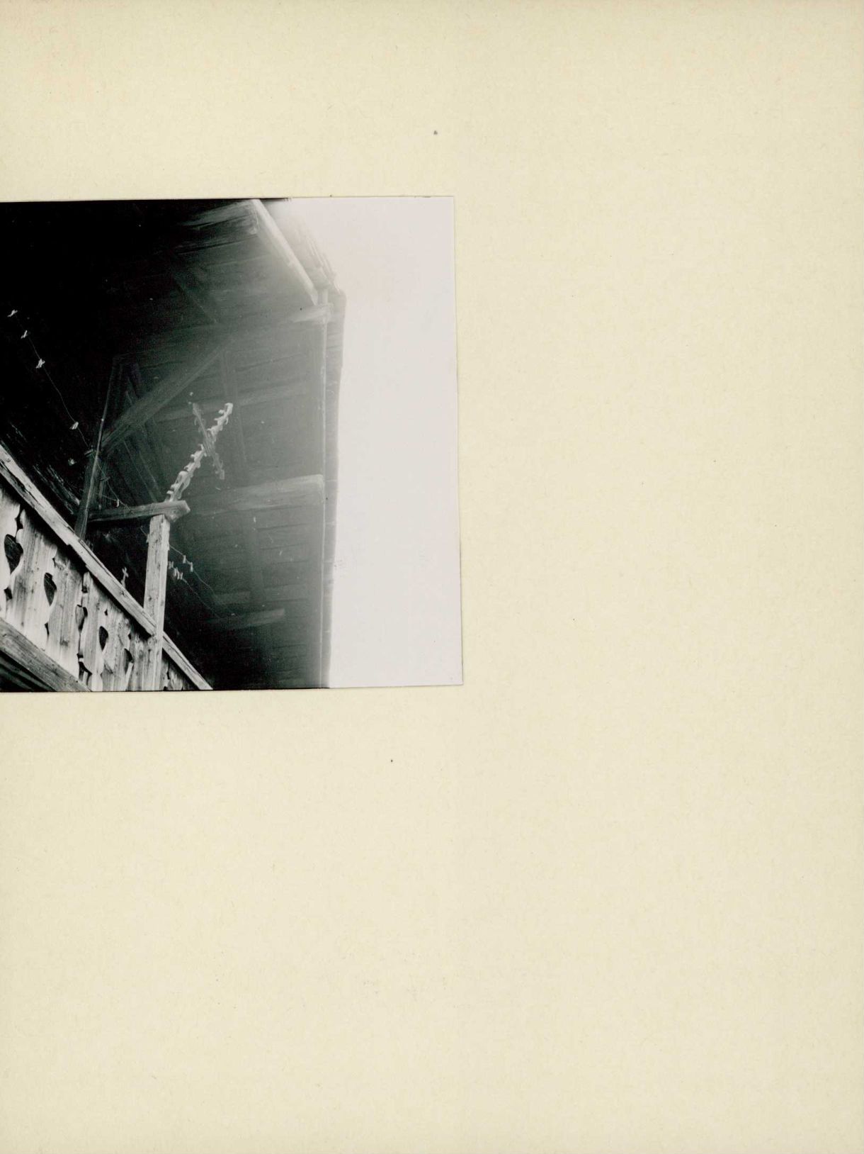 [Kreuz unter dem Dach eines Holzhauses]