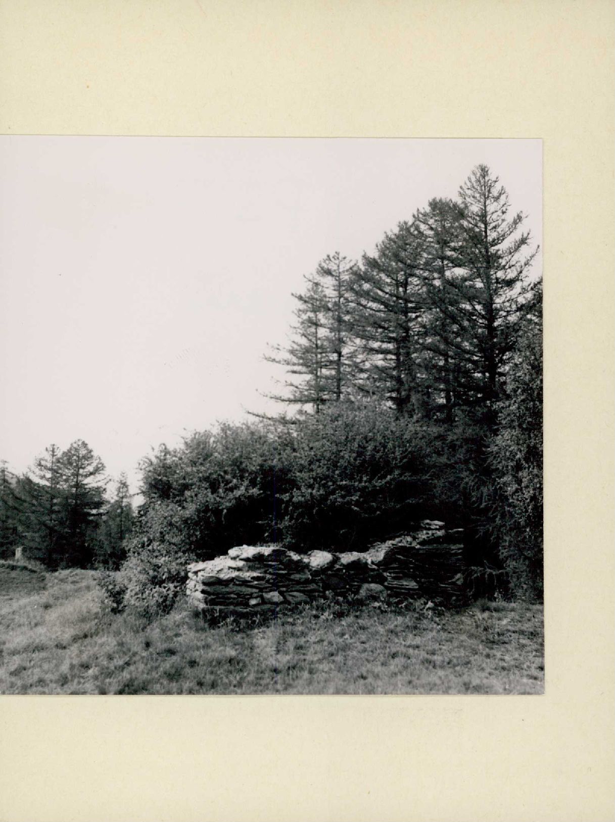 [Steinmauer vor Sträuchern]