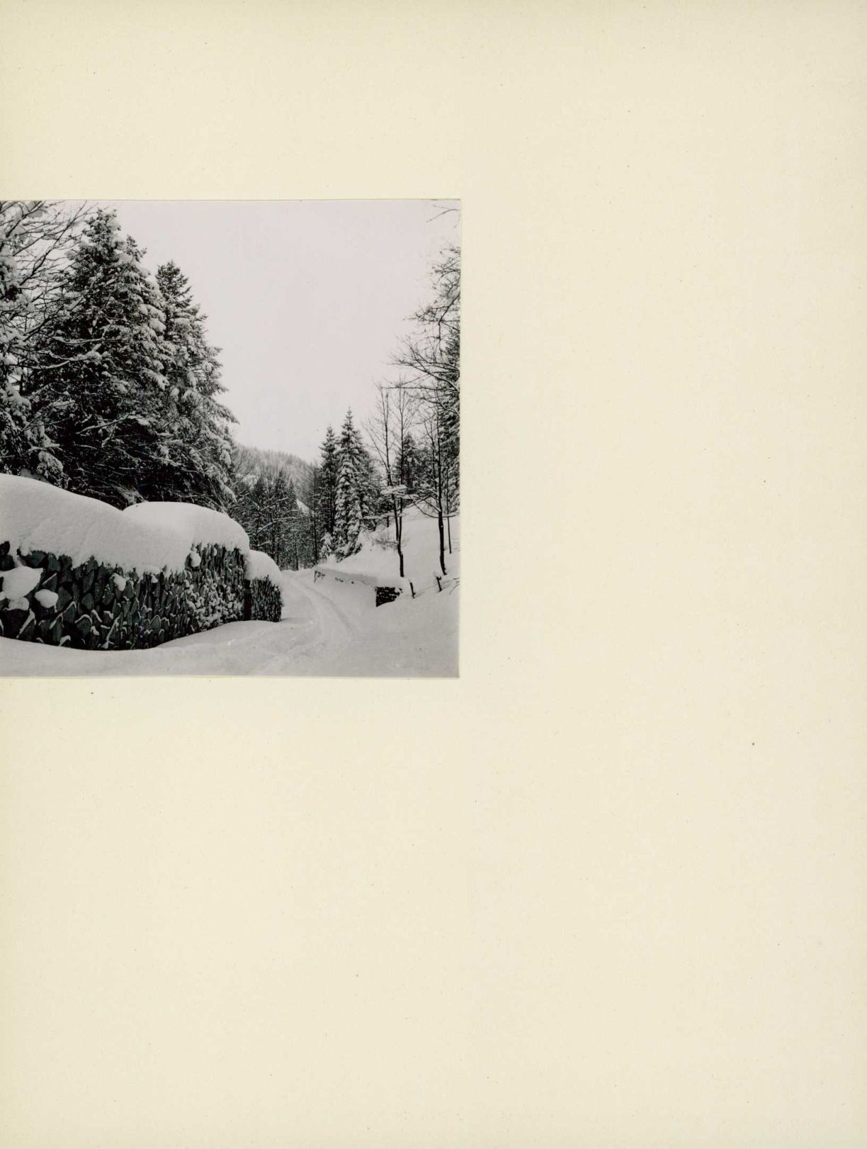 [Aufgeschichtete Baumstämme im Winter]