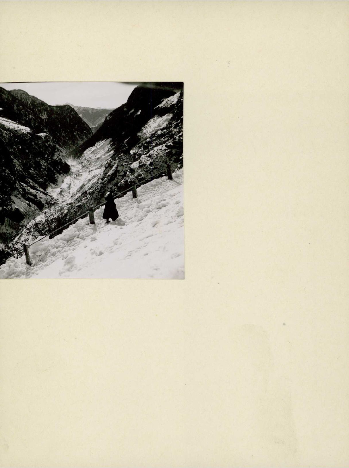 [Fussgängerin auf verschneitem Weg]