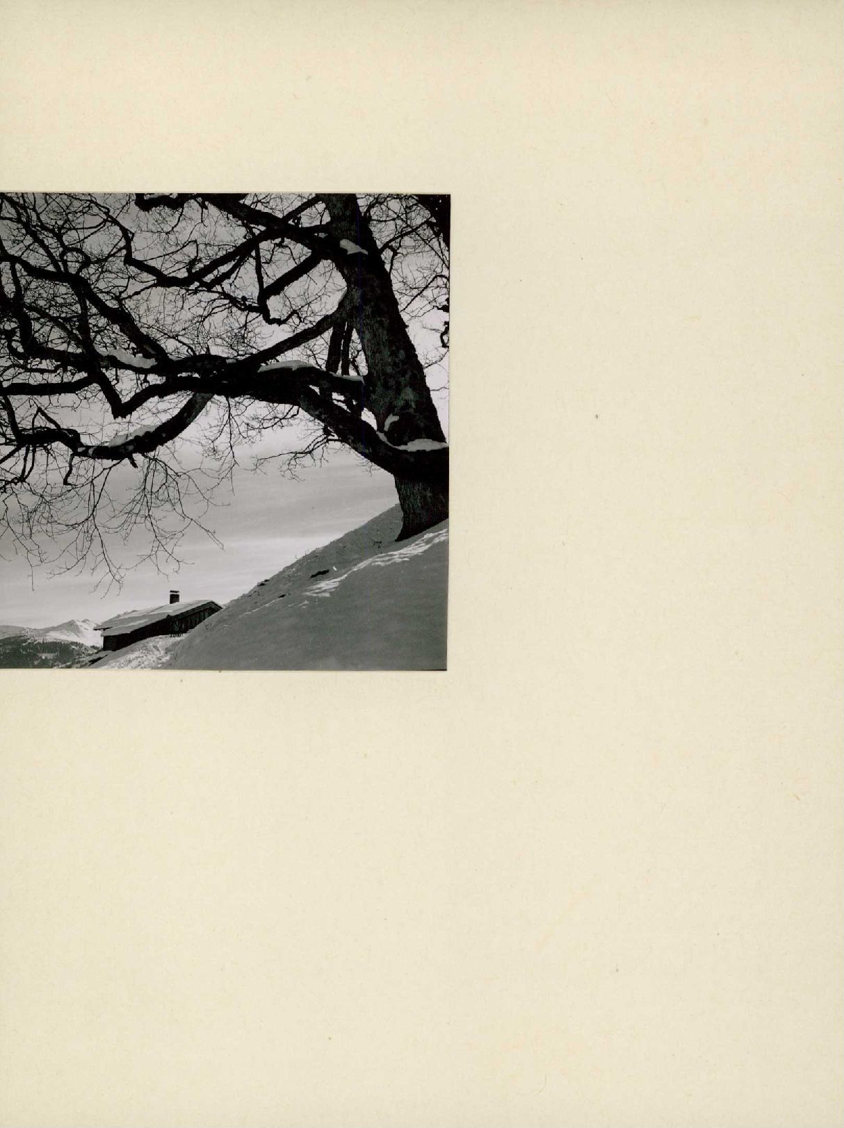 [Holzhaus in verschneiter Landschaft]