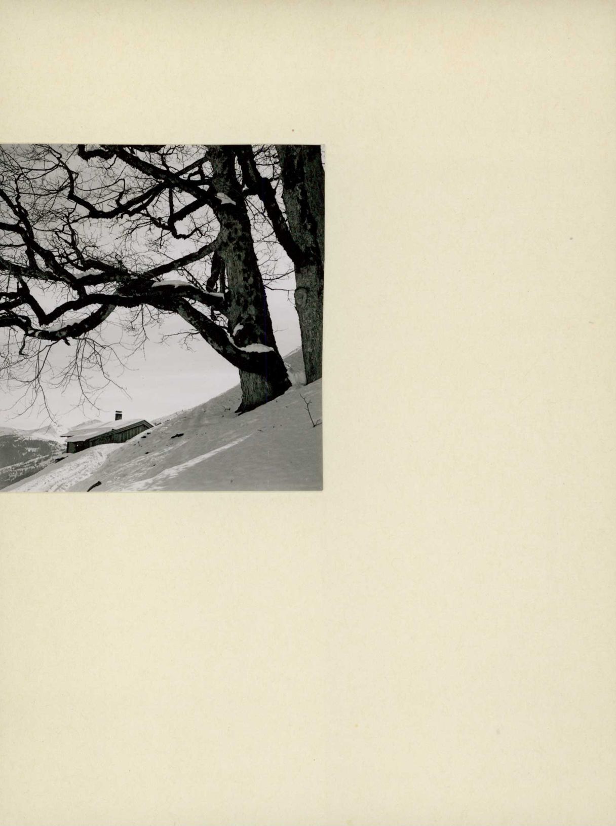 [Holzhaus in verschneiter Landschaft]