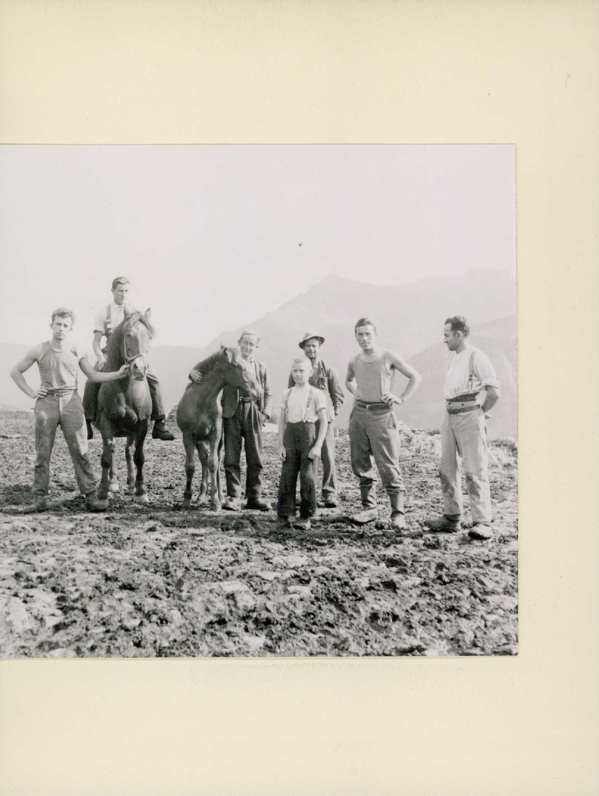 [Männergruppe mit Pferd]