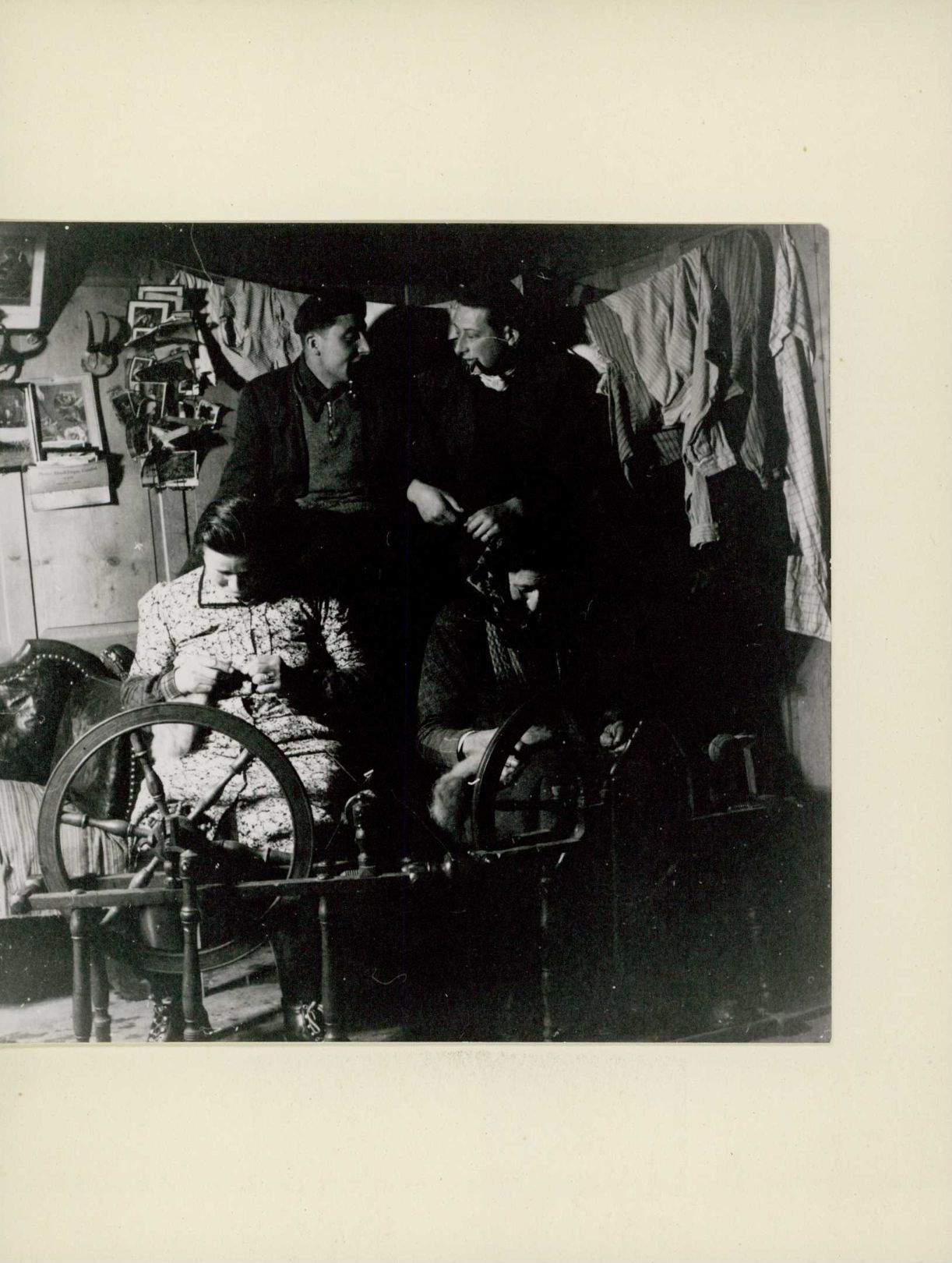 [Frauen an Spinnrädern]
