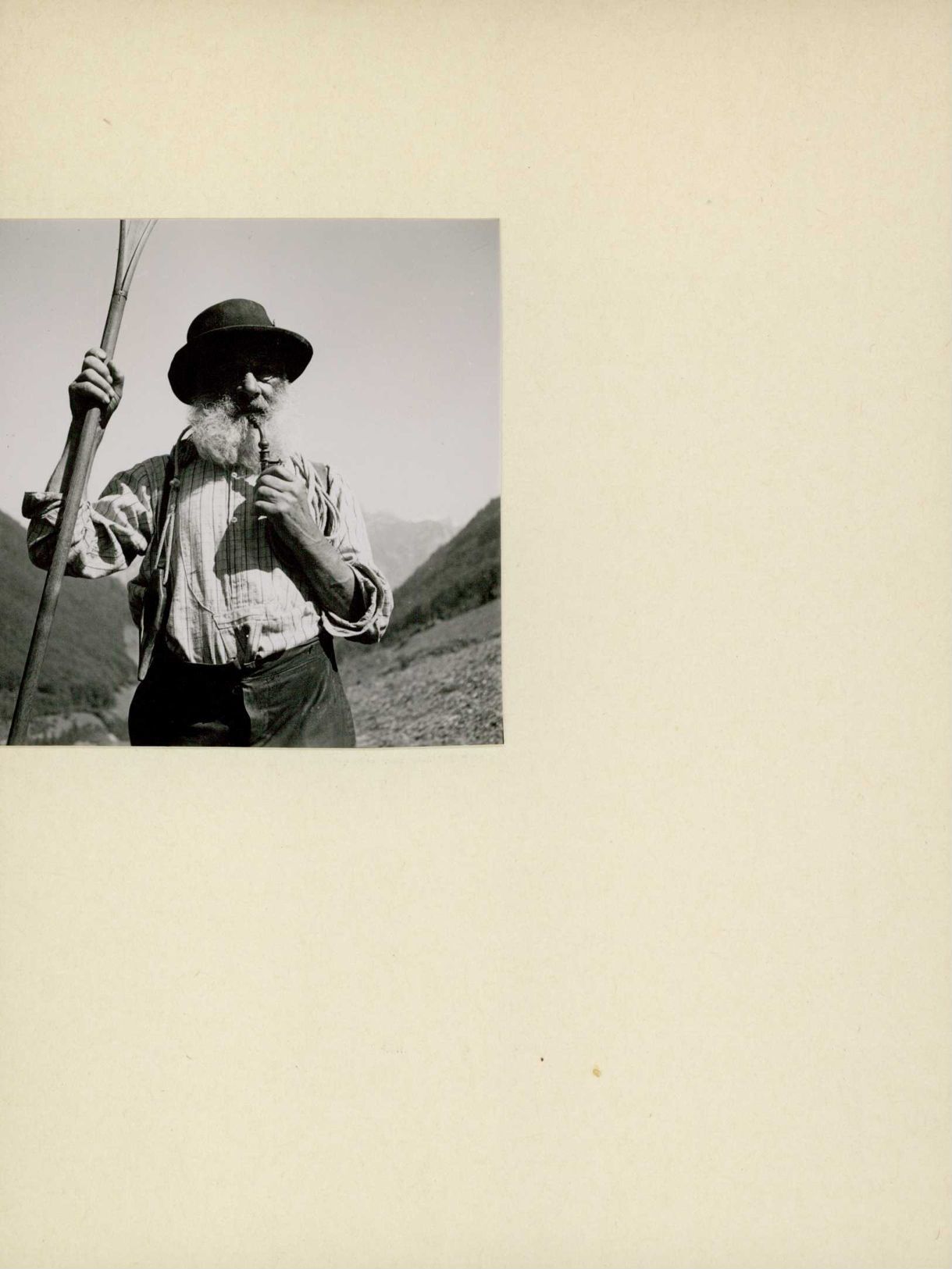 [Mann mit Hut, Rechen und Pfeife]
