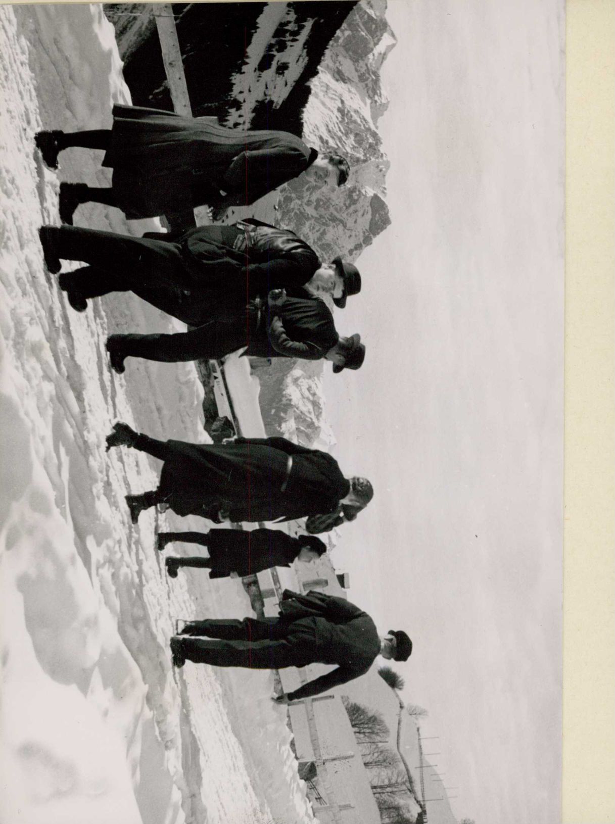 [Passanten beim Kirchgang auf verschneitem Weg]