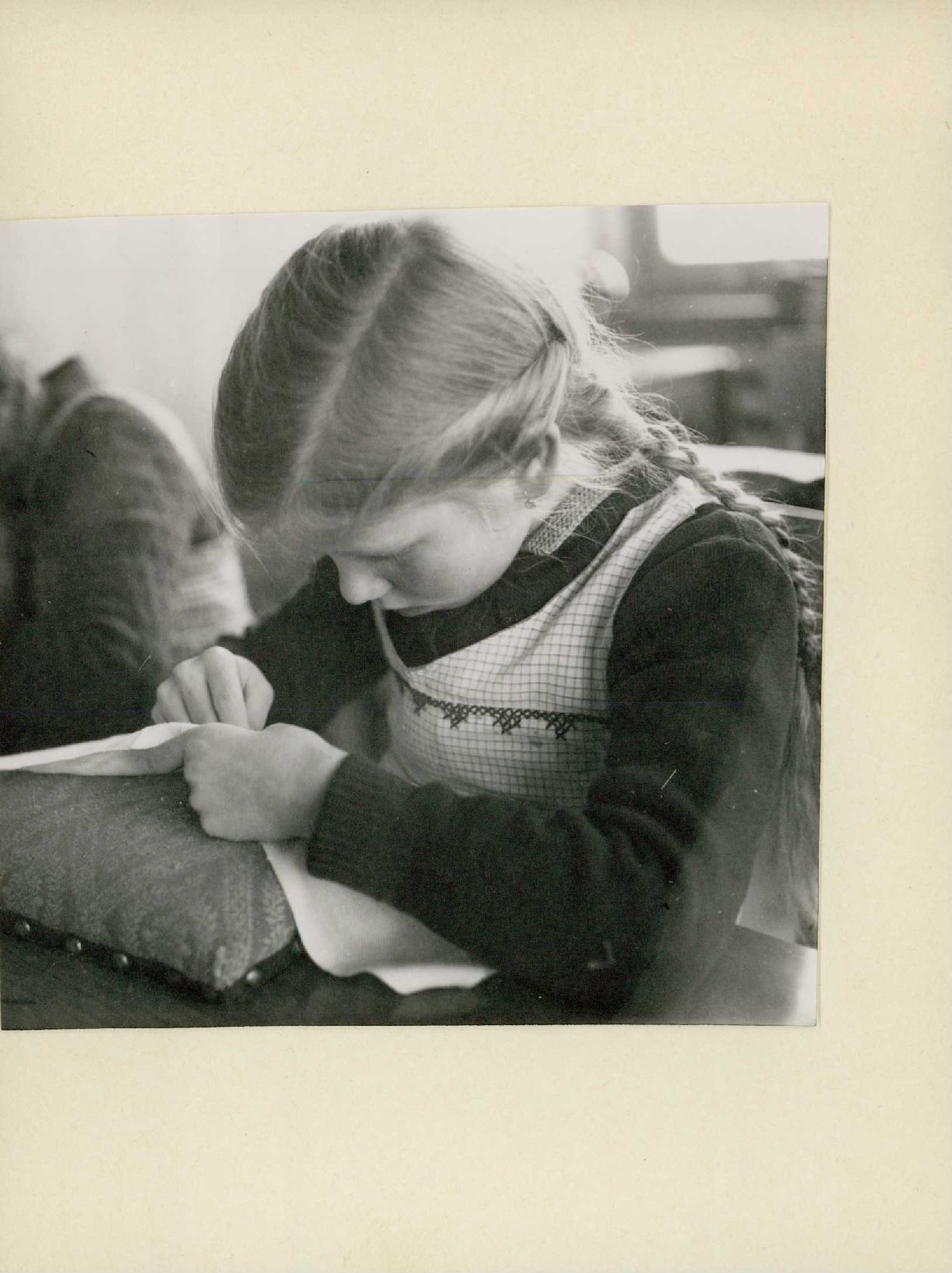 [Mädchen beim Handarbeitsunterricht]